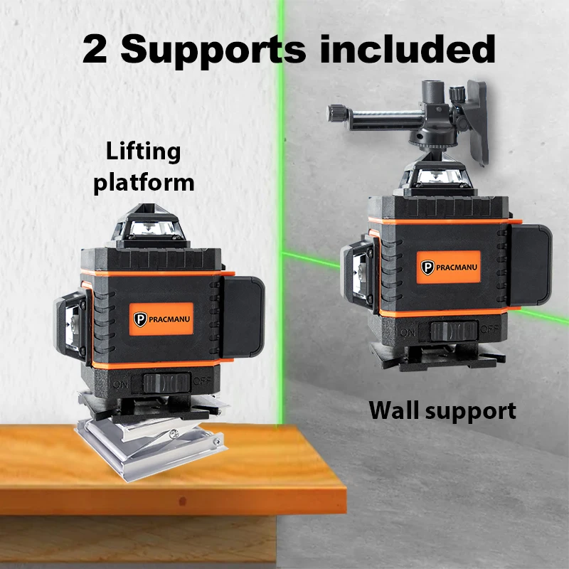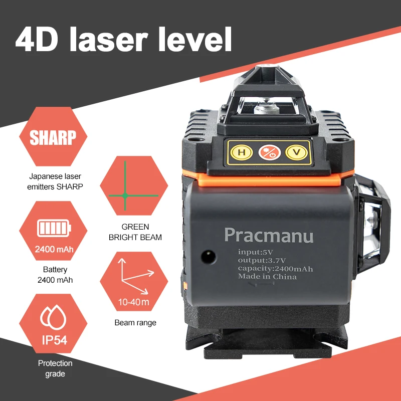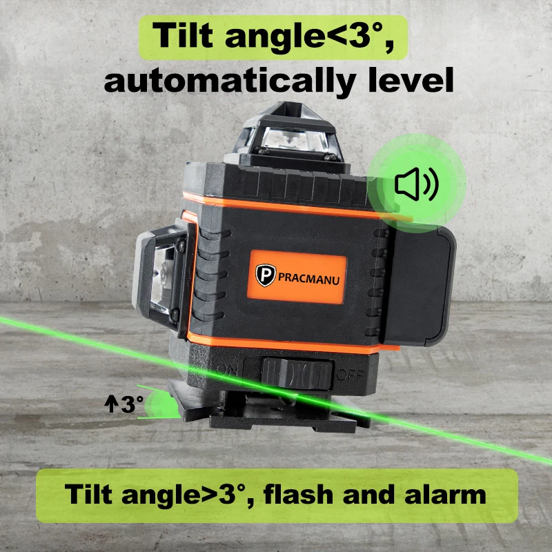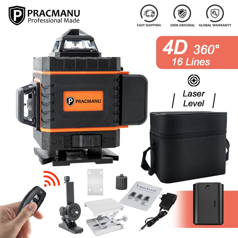 Pracmanu 16 Lines 4D Laser Level Auto Self-Leveling Horizontal And Vertical Cross Line Laser Level Super Powerful Green Beam