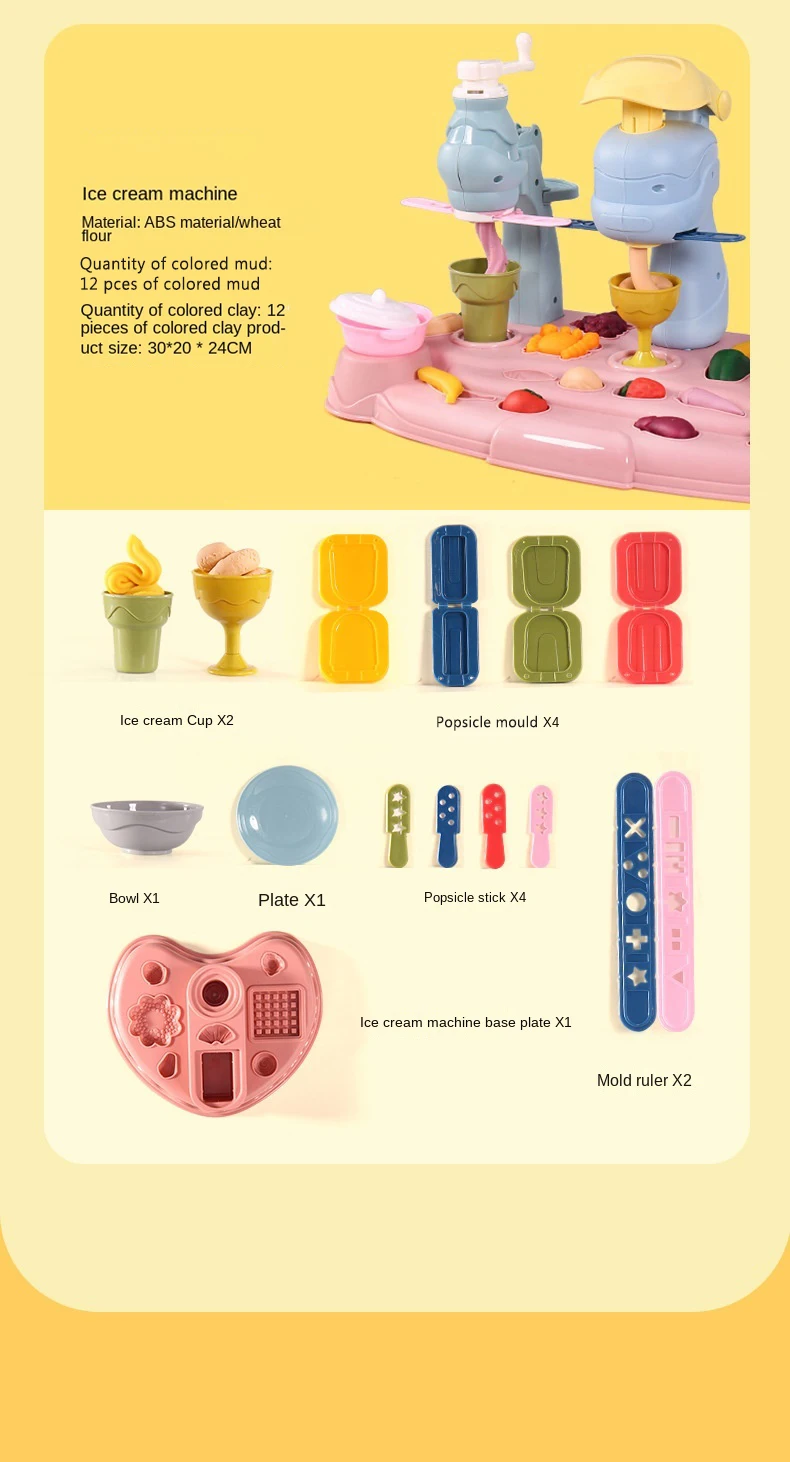 Product features: 3 different styles of mud machine, ice cream machine, noodle machine, ice cream noodle machine