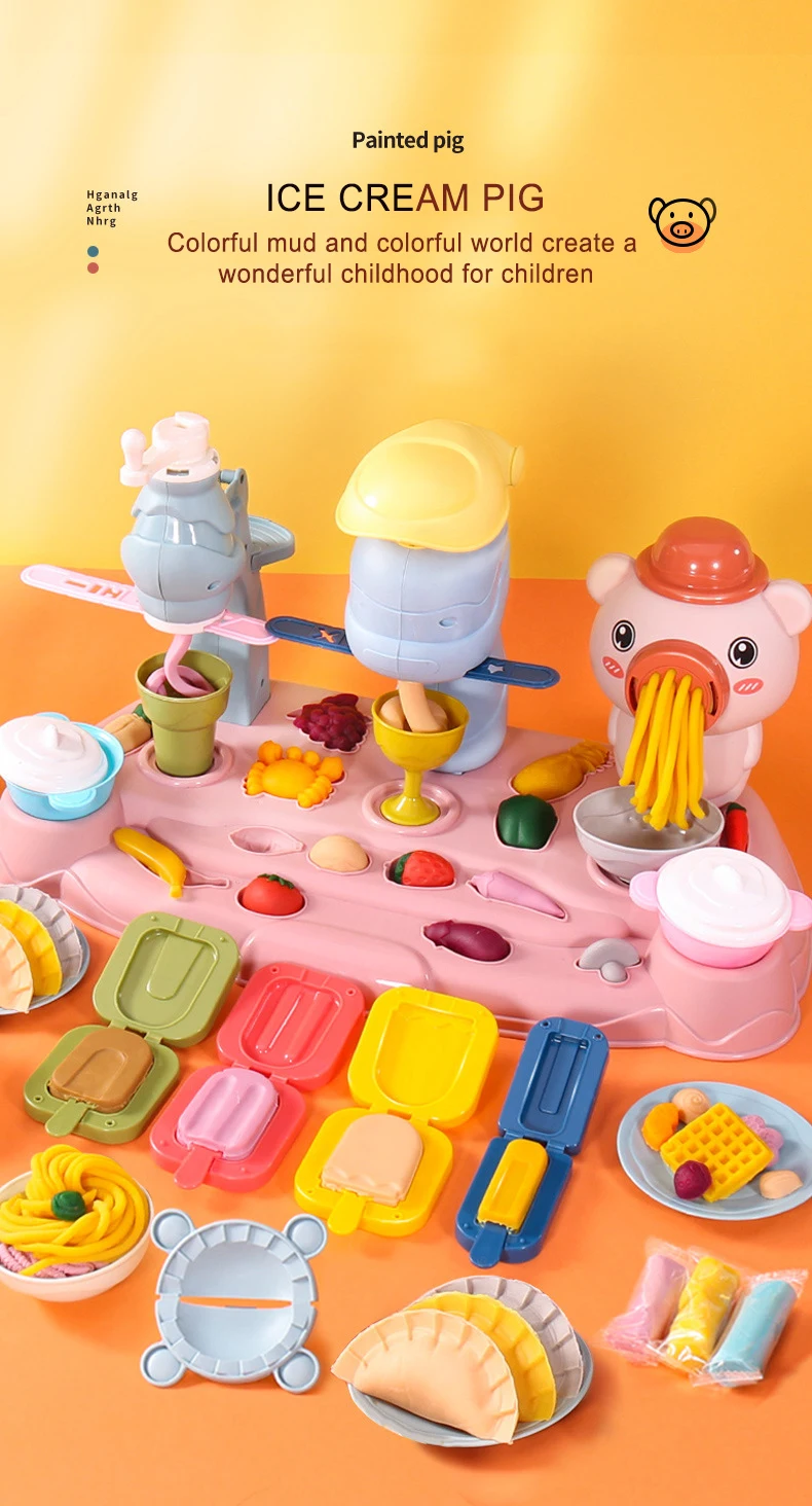 Pretend To Play Piggy Noodle Machine Family Play House Toy Set Colored Clay Plasticine Ice Cream Machine Mold Children’s Toys