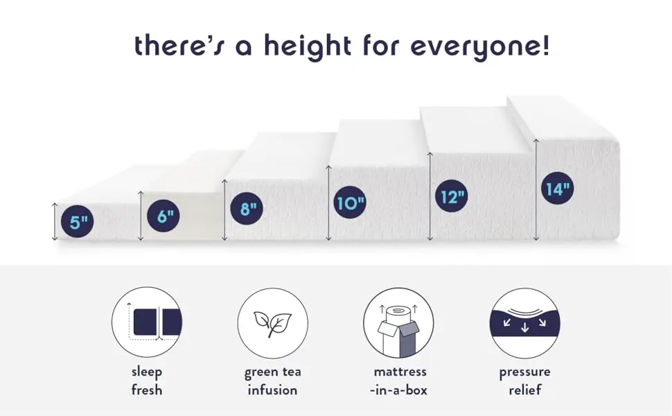 Best Price Mattress 5-inch green tea memory foam mattress provides a great sleeping surface. In normal temperatures it is somewhat firm, but when you lay down, it starts reacting to the temperature of your body and begins to mold itself to your shape. Then, weight is evenly distributed along the surface, relieving pressure points and helping you to sleep more without tossing and turning. Green tea infusion provides a calming effect for a night of full relaxation. The breathable foam design optimizes airflow, reducing body heat and helping to keep your mattress fresh for a longer time. Our mattress is made with CertiPUR-US certified foams and wrapped in a soft fabric cover. Deep dual layers: memory foam top + high density base support layer, rich poly jacquard fabric cover, 10-year manufacturer’s warranty.