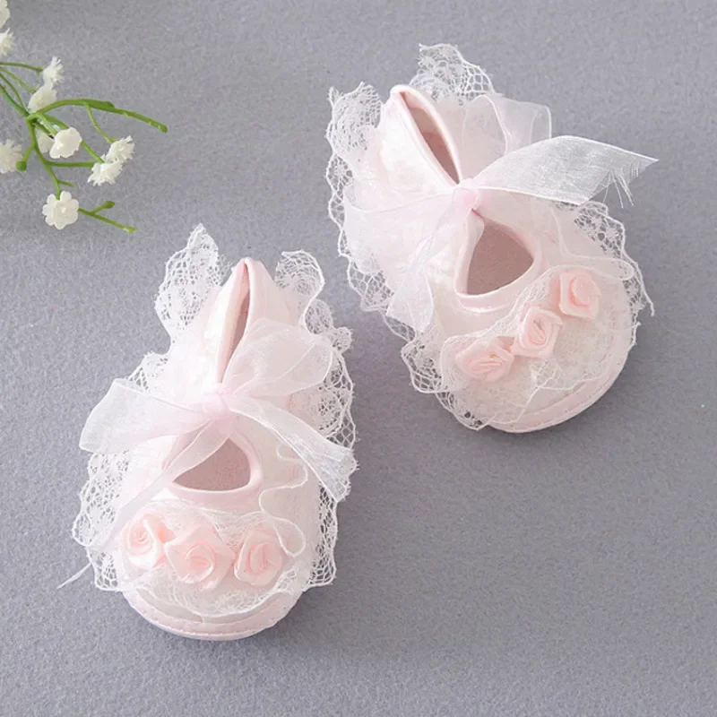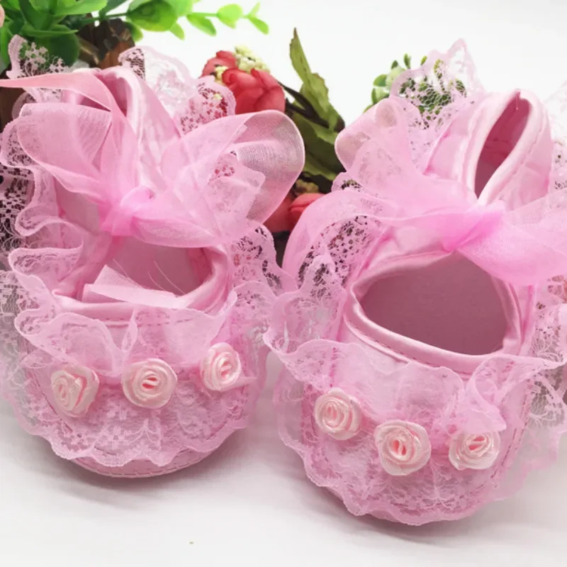Princess Party Lace Floral Soft Sole Crib Shoes Newborn Baby Girl Shoe Anti-slip Sneaker Prewalker Toddler Kid 0-12M Pink Shoes