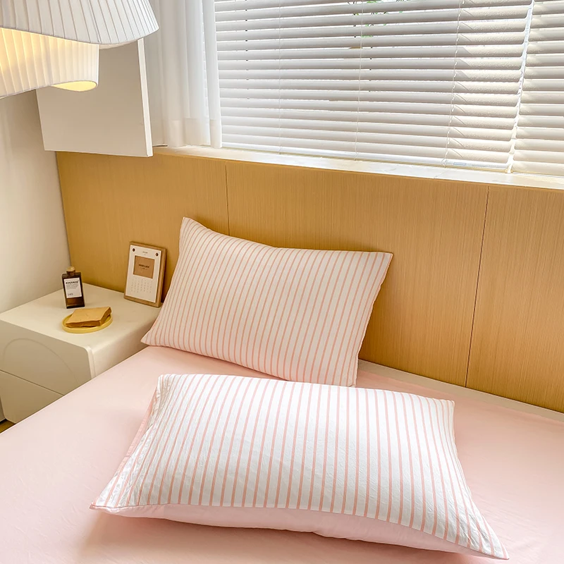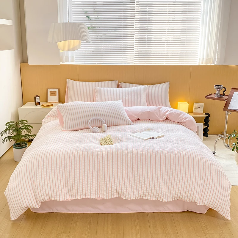 Princess Pink Seersucker Bedding Set INS Stripe Duvet Cover Solid Color Bed Linen Sheet For Girls Single Double Queen Bedclothes
