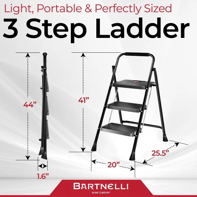 Pro Luxury Step Ladder, 3 Step Foldable Step Stool for Home Rock-Solid 500 lb Capacity, Soft Handle, Anti-Slip Feet