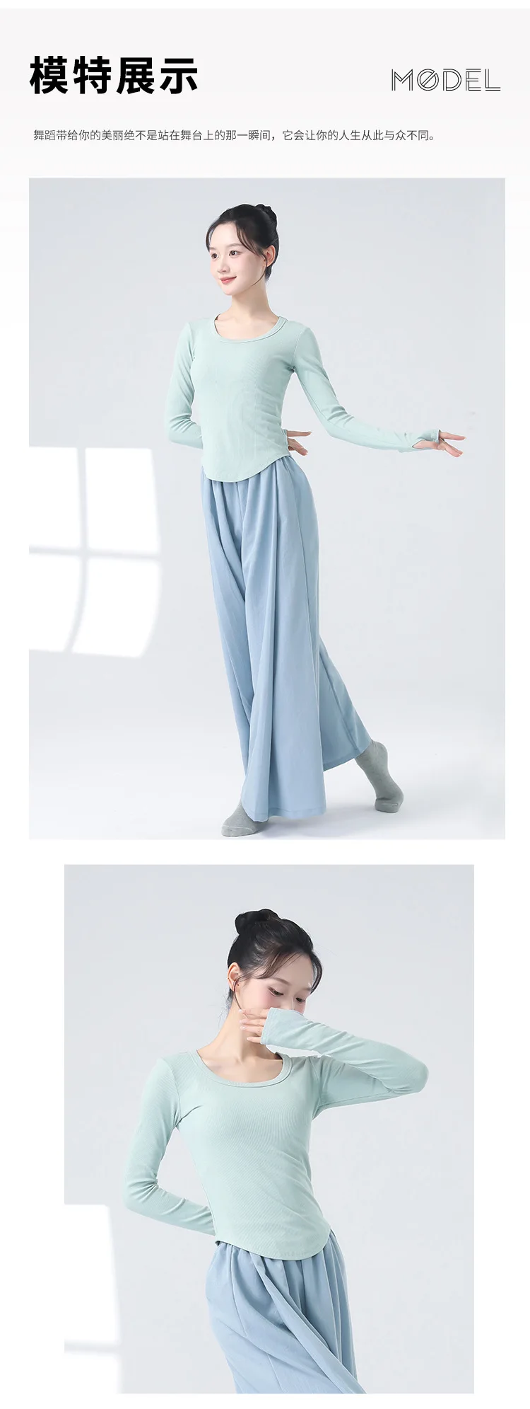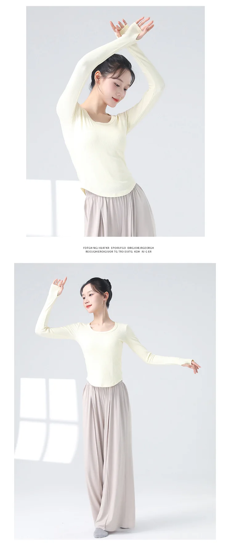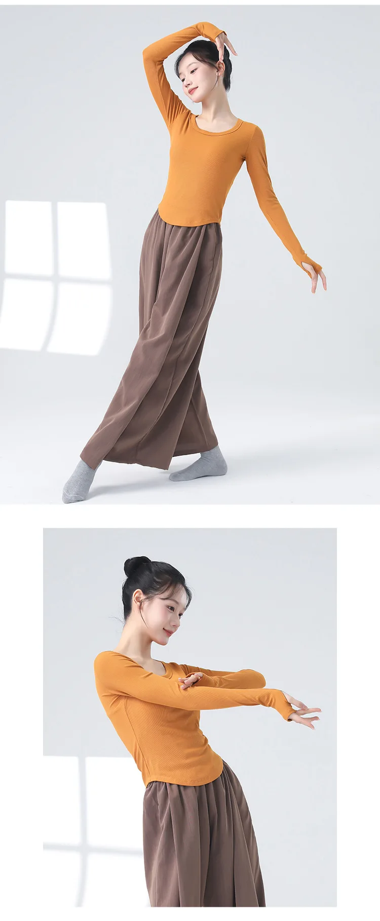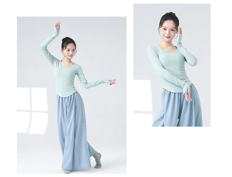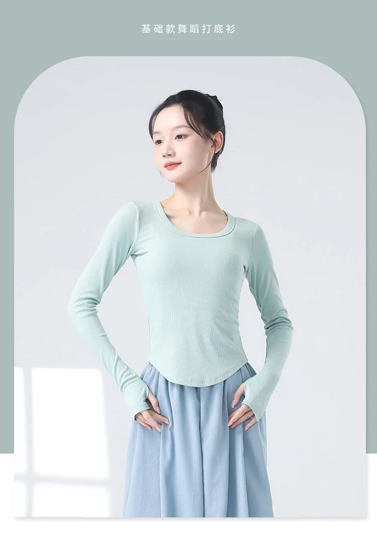 Modern Dancewear Women's New Long Sleeve Over Fingers Practice Slim Peplum Bottom Shirt Adult Daily Training Clothing Tops
