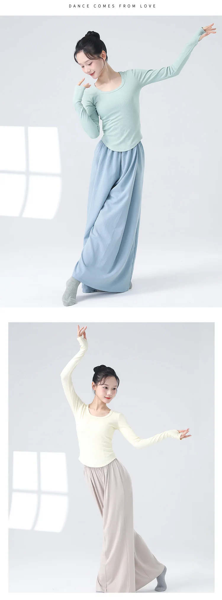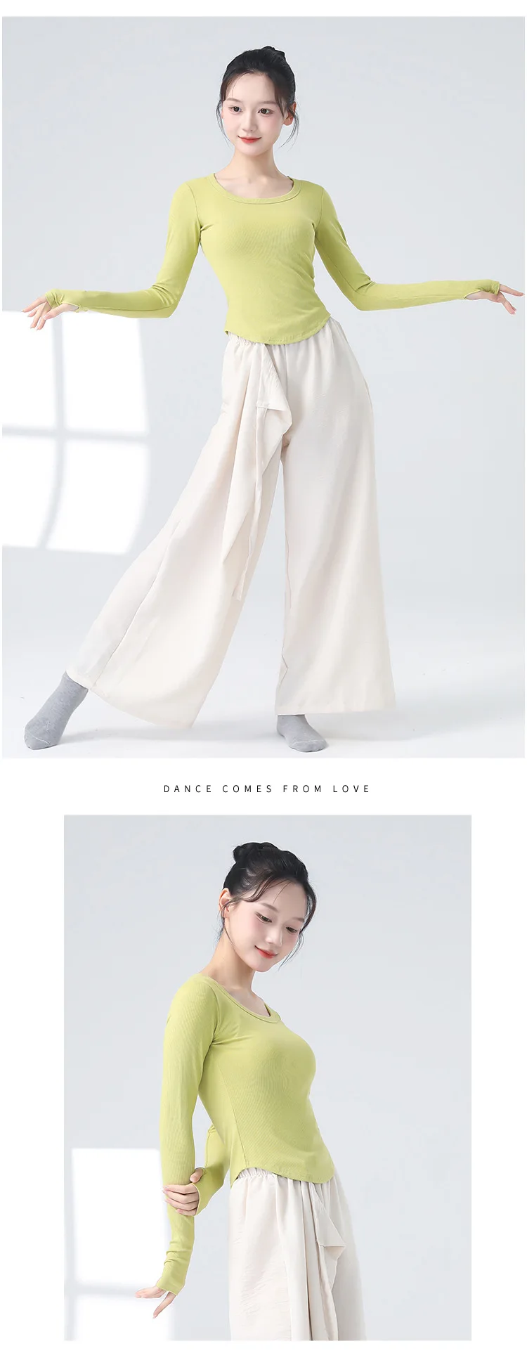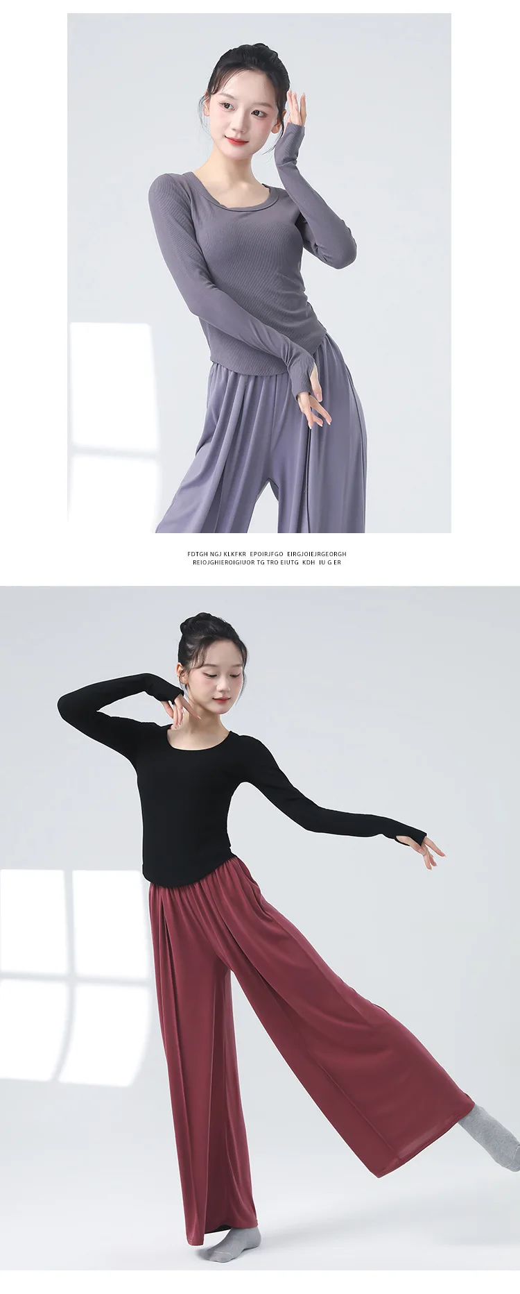 Modern Dancewear Women's New Long Sleeve Over Fingers Practice Slim Peplum Bottom Shirt Adult Daily Training Clothing Tops