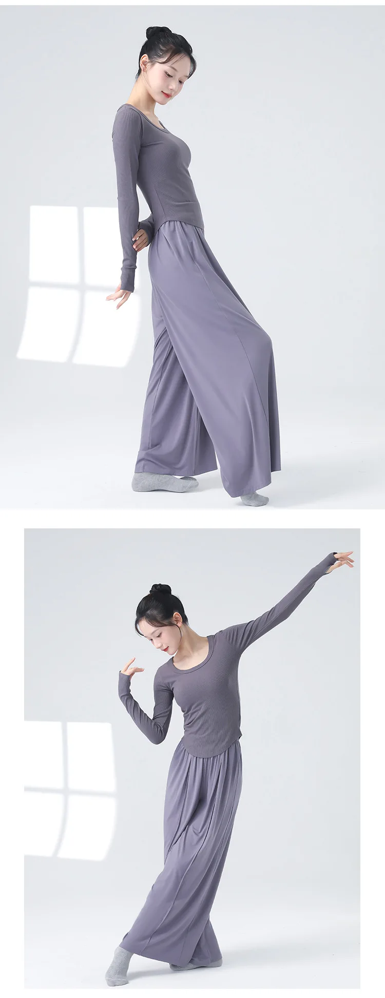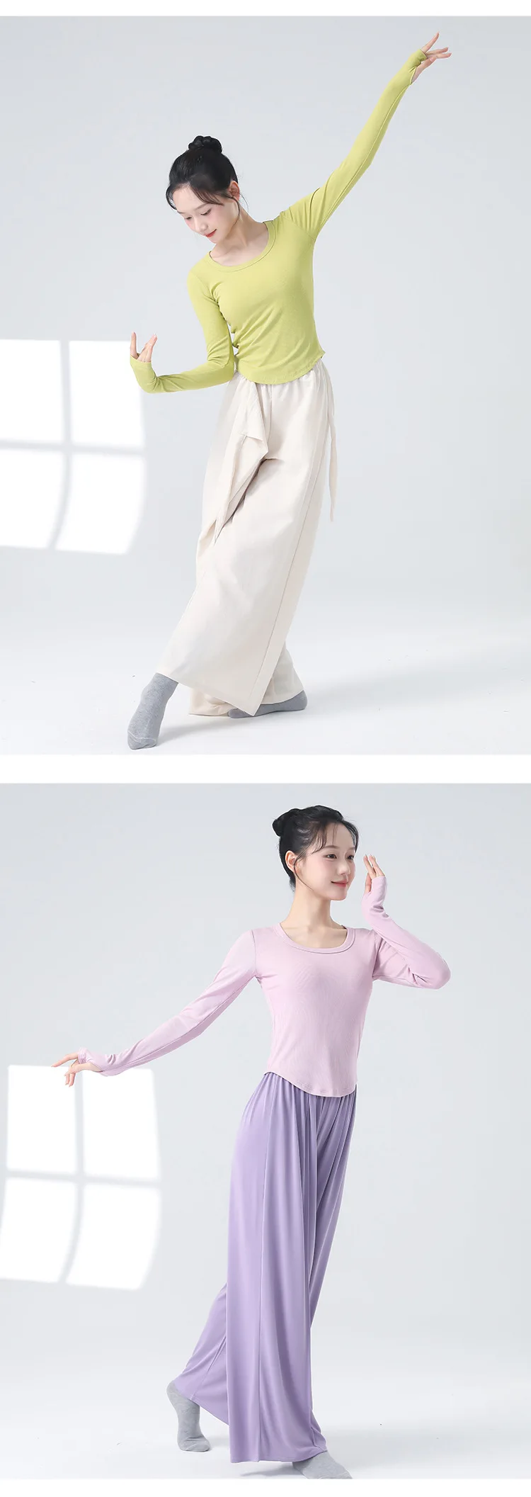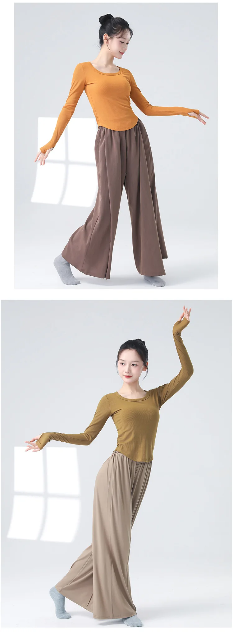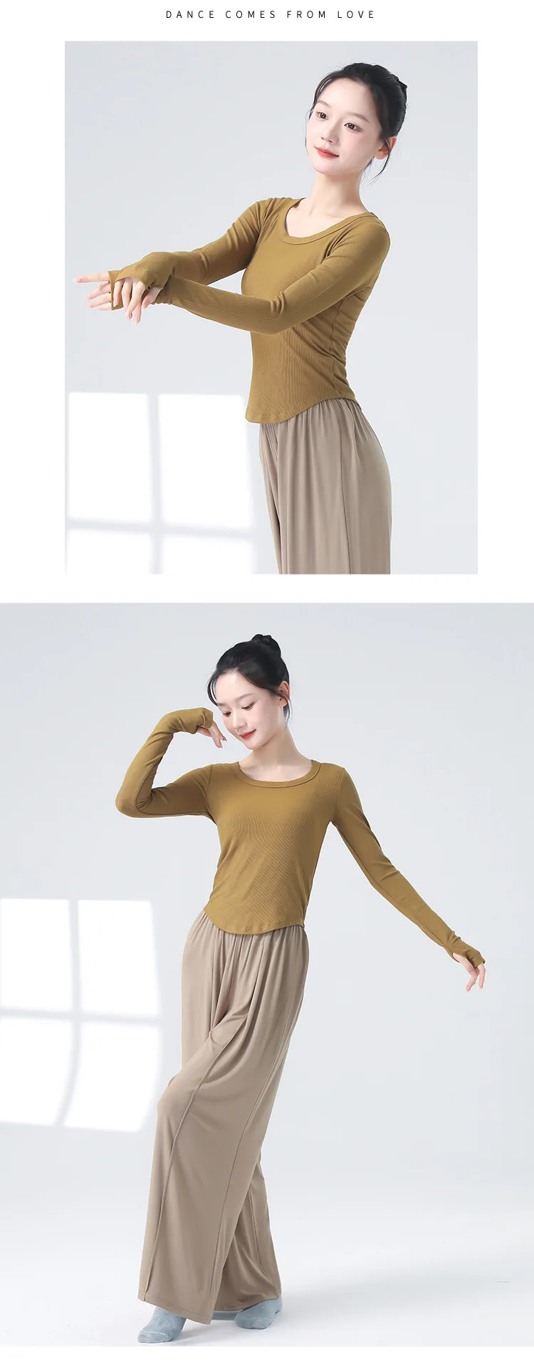 Modern Dancewear Women's New Long Sleeve Over Fingers Practice Slim Peplum Bottom Shirt Adult Daily Training Clothing Tops