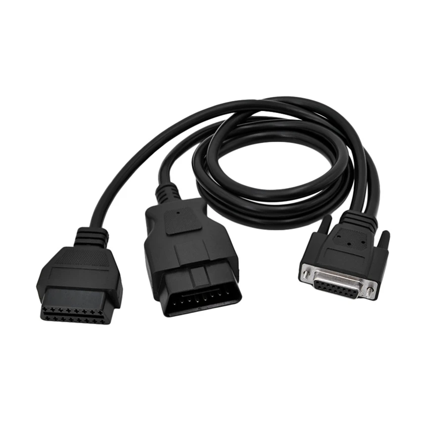With a 16 pin female OBD connector, 16 pin male OBD connector and 15 pin D plug to connect to the breakout box.