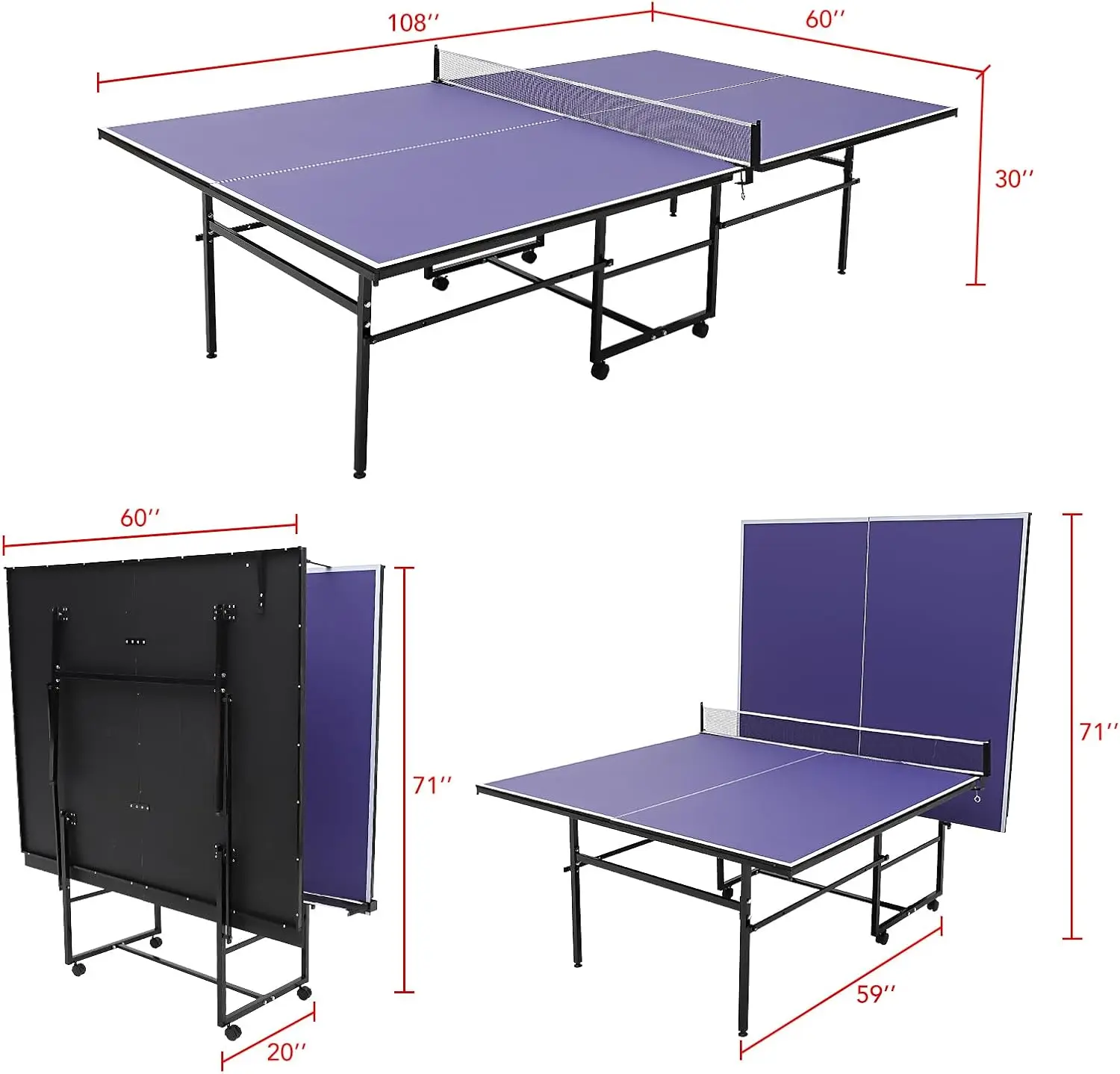 【EASY TO INSTAL】This ping pong table coming with complete accessories and detailed instruction, it is convenient for you to assemble and quickly without complex tools. Please contact us if you have any problems, we will reply you as soon as possible and help you solve all the product problem.