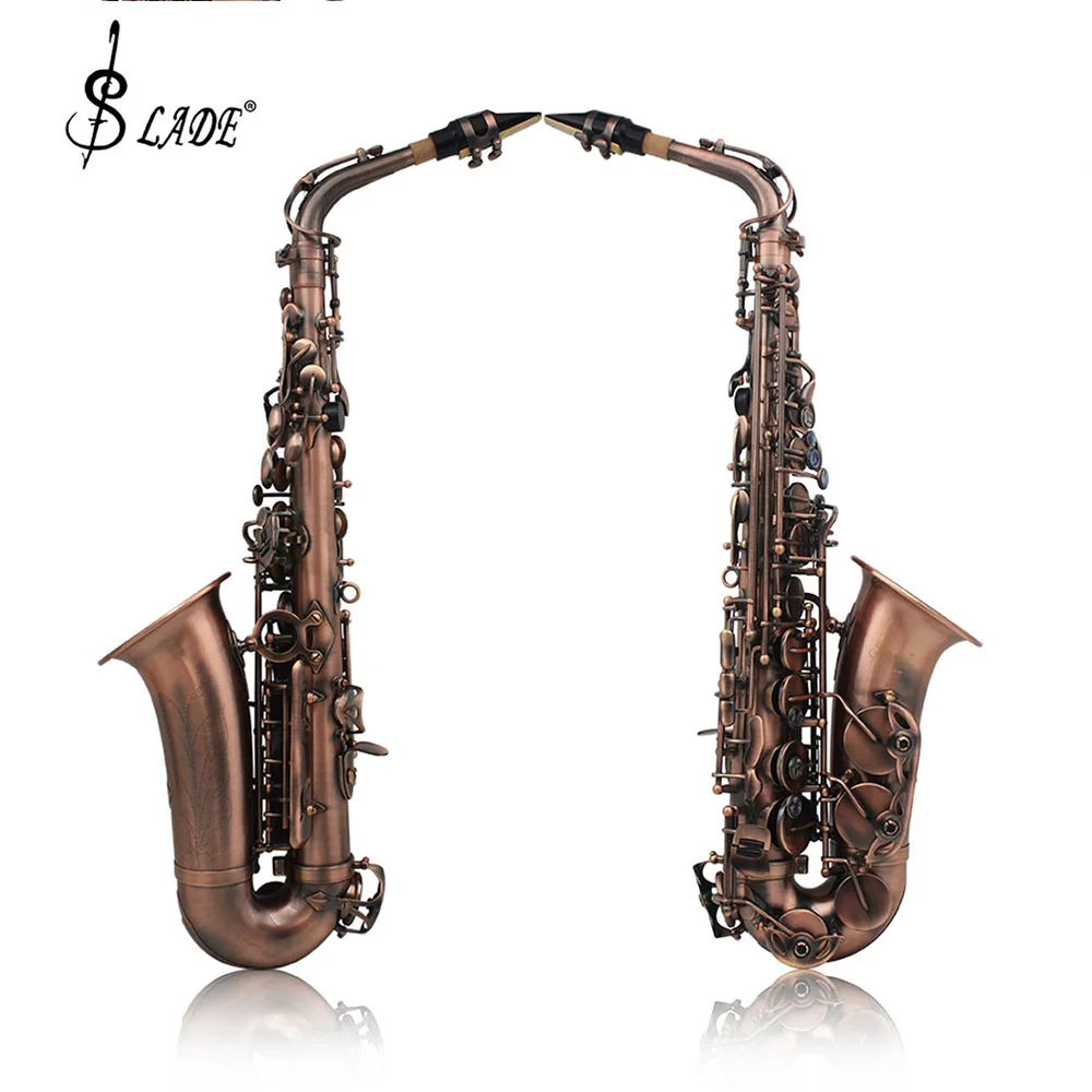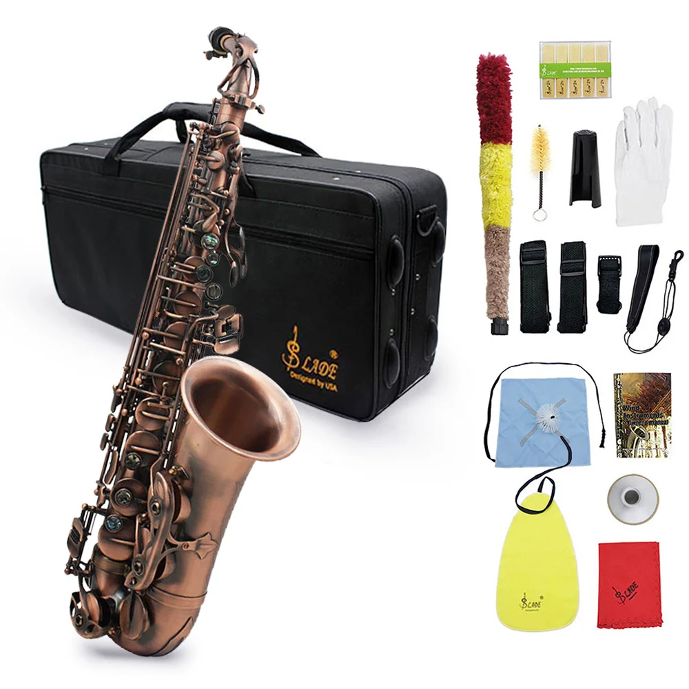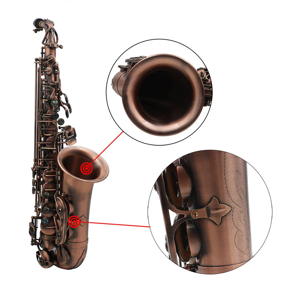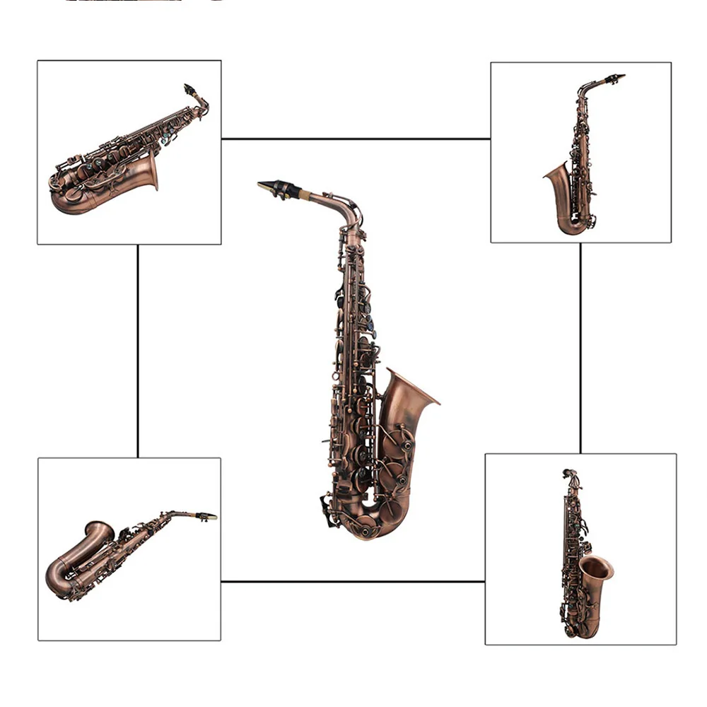 Professional Red Bronze Bend Eb E-flat Alto Saxophone Sax Abalone Shell Key Carve Pattern with Case Gloves Cleaning Cloth Straps