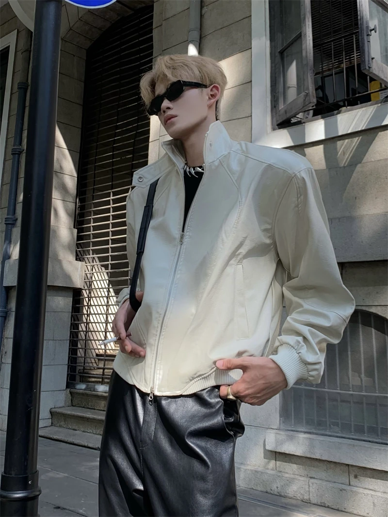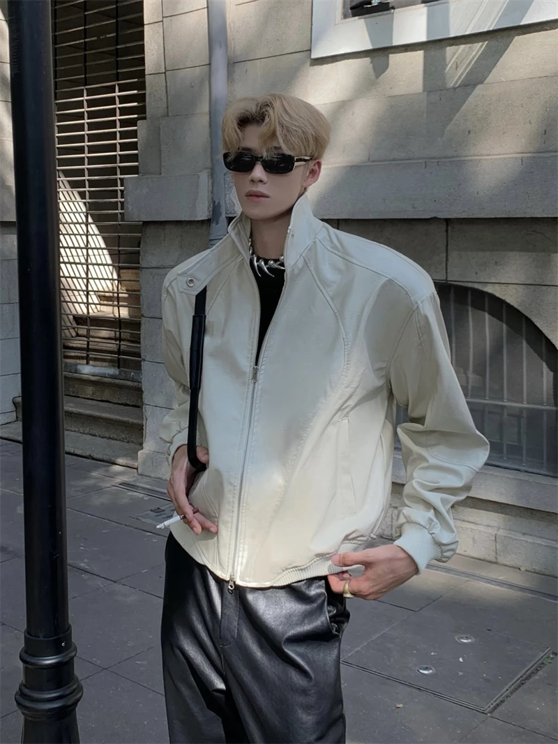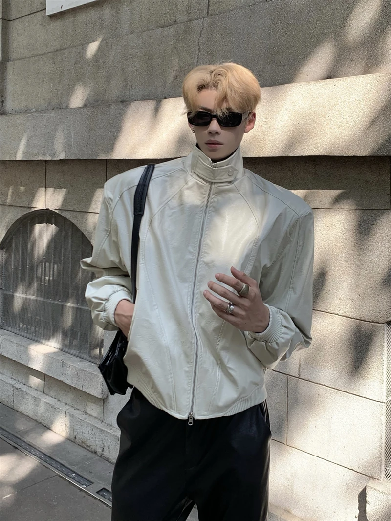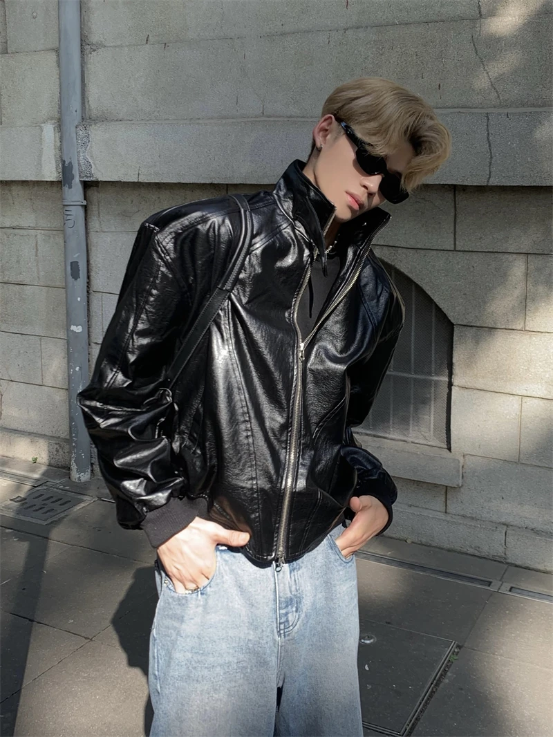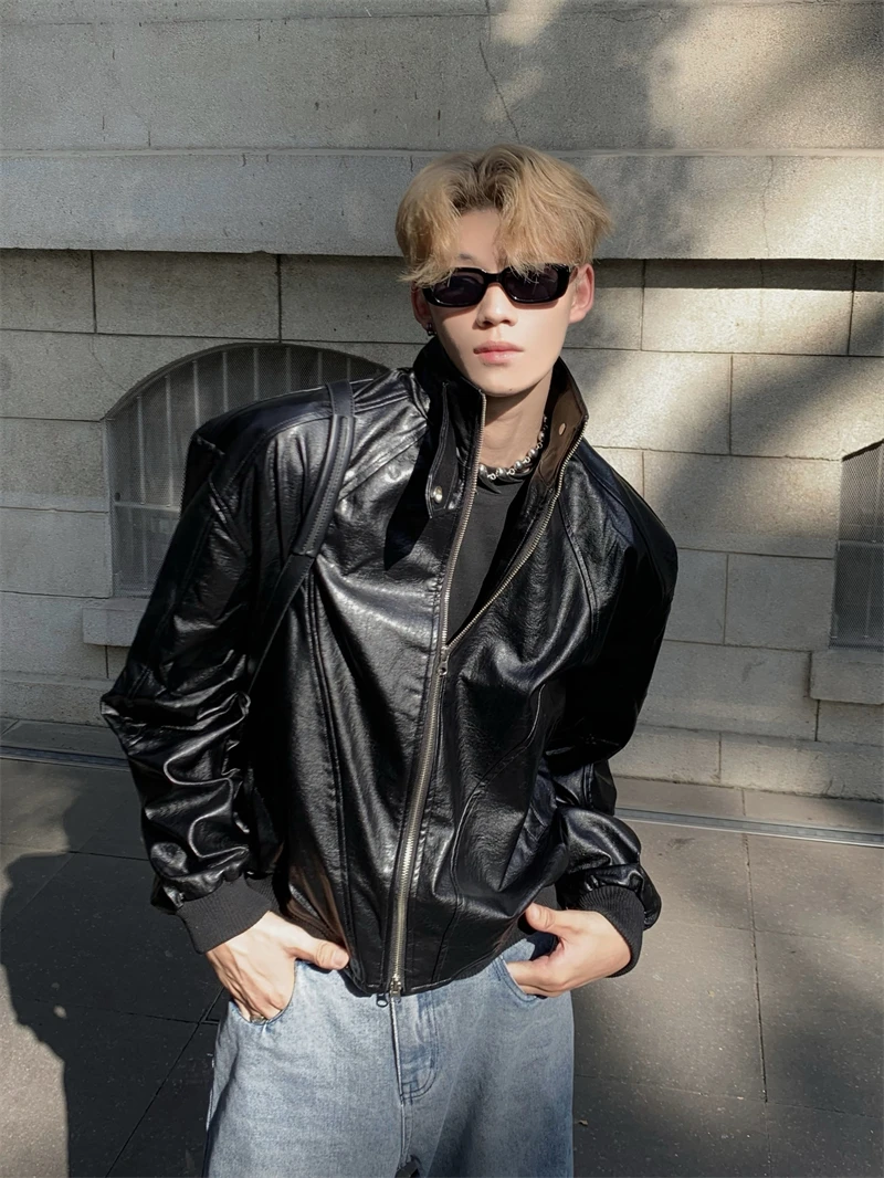 Pu-leather Jackets Men Handsome High Street Motorcycle Chic Autumn Winter Hip Hop Harajuku Casual Long Sleeved Handsome College