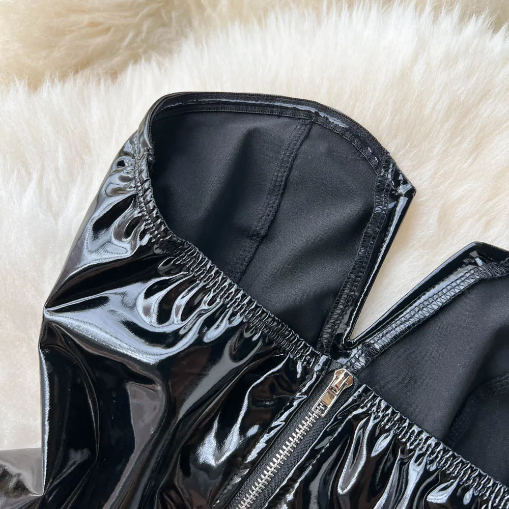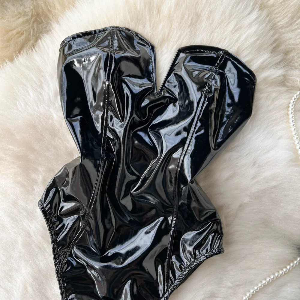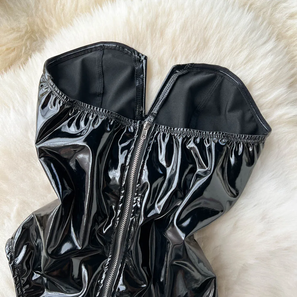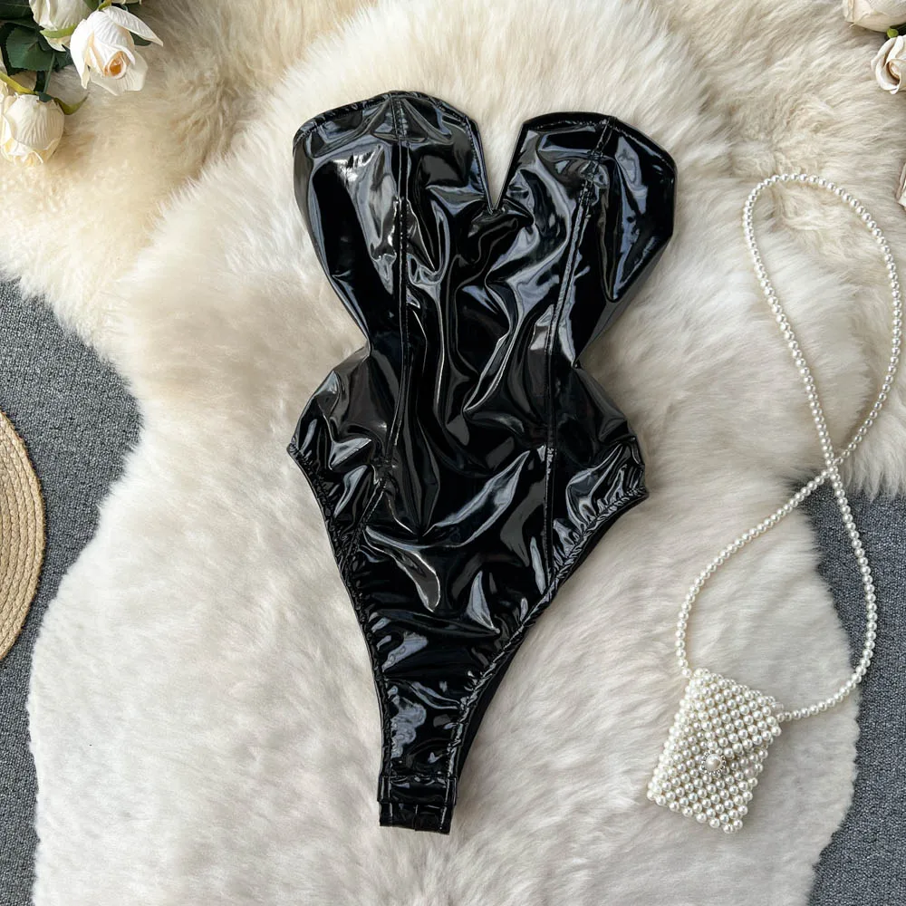 PU Leather Sexy Bodysuits Women Sleeveless Zipper Slim Rompers Autumn Winter Streetwear French Style Holidy Vintage Palysuits