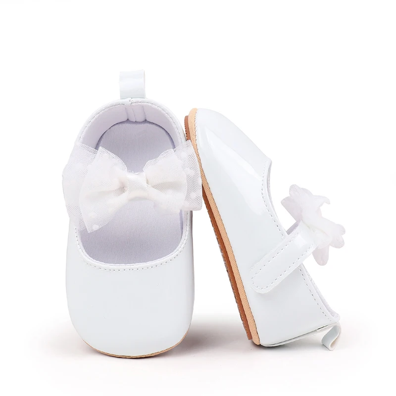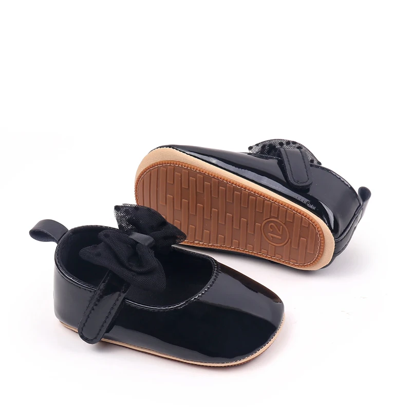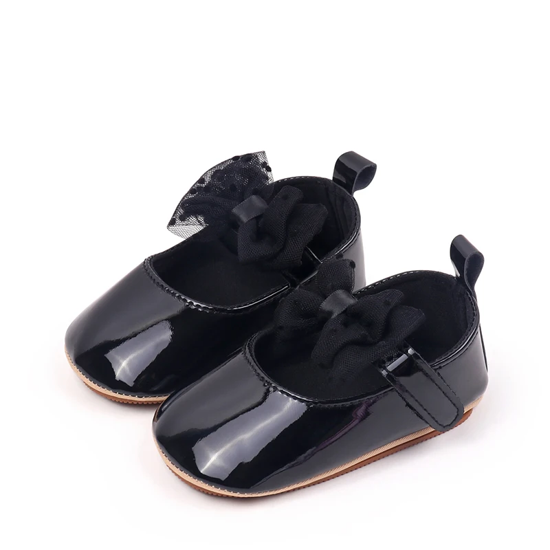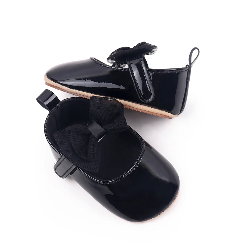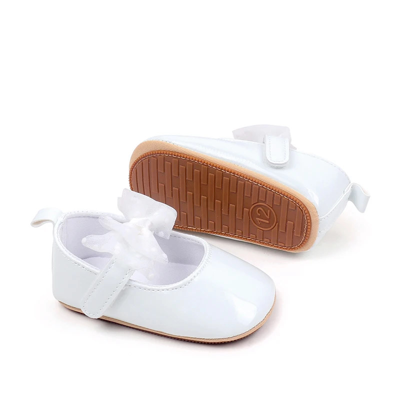 Baby Girls Mary Jane Flats Fashion Dots Bowknot Dress Shoes Non-Slip Newborn Crib Shoes