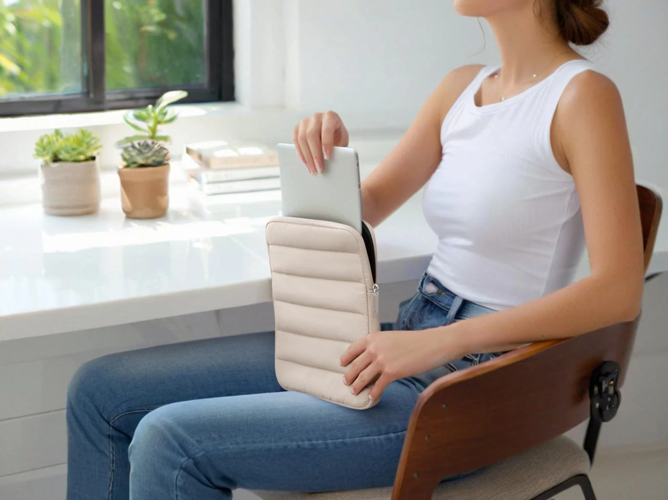 Puffy iPad Sleeve 9-11 Inch Tablet Sleeve, Beige iPad Pouch for Women and Men, Cute iPad Air Sleeve, iPad Sleeve 11 Inch Tablet Case, 10 Inch Tablet Sleeve iPad Air, iPad Pro 11 Travel Case