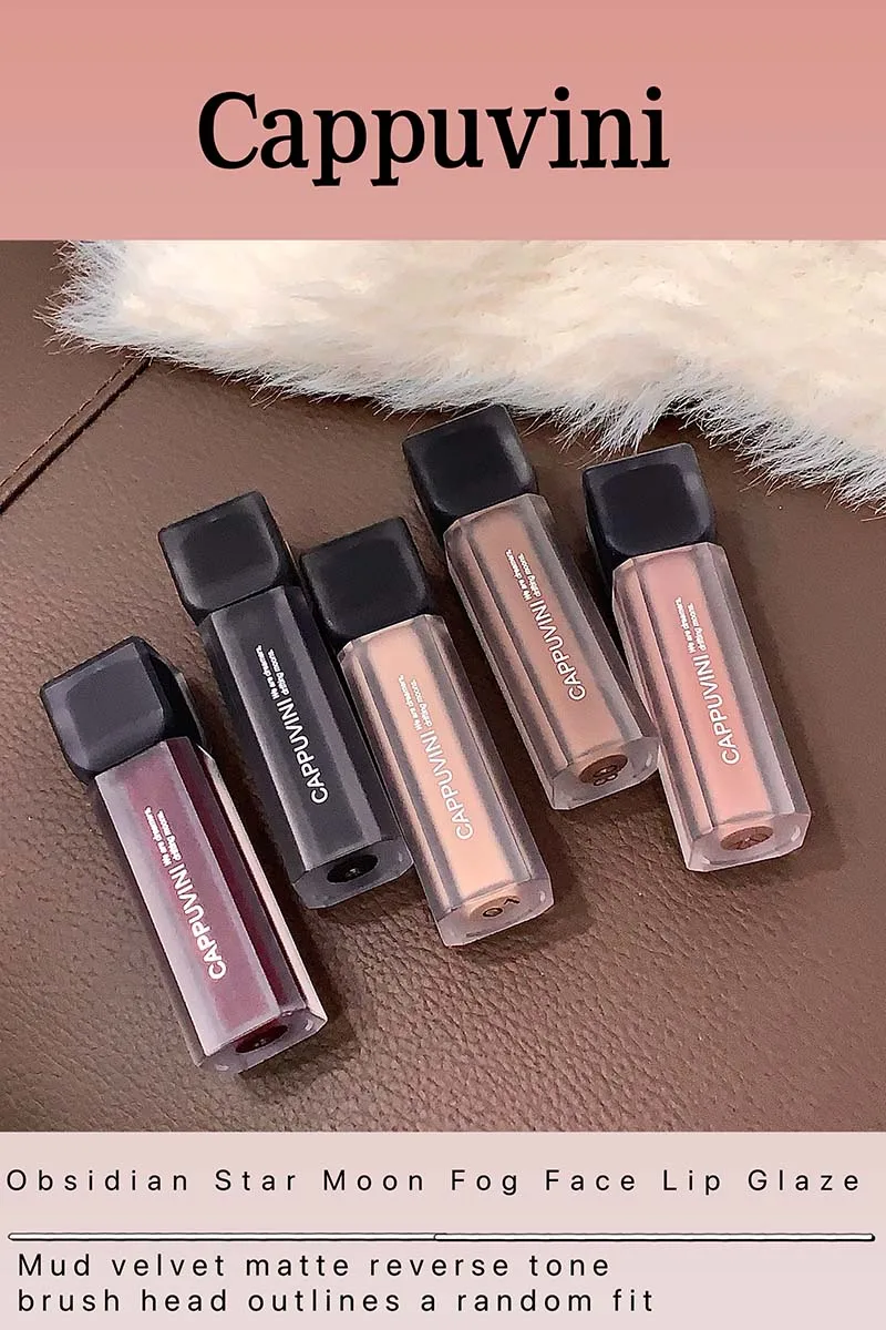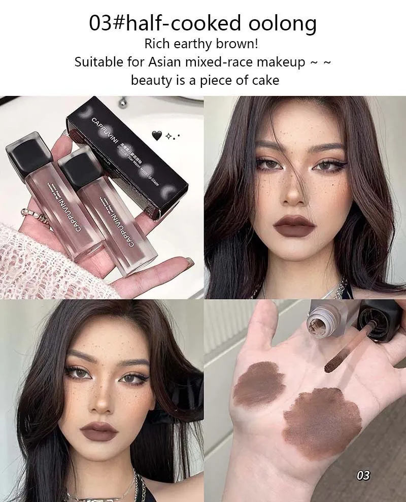 Punk Berry Red Lip Gloss Goth Black Brown Matte Velvet Lip Glaze Soft Mist Lipstick Waterproof Non Stick Nude Lips Tint Makeup
