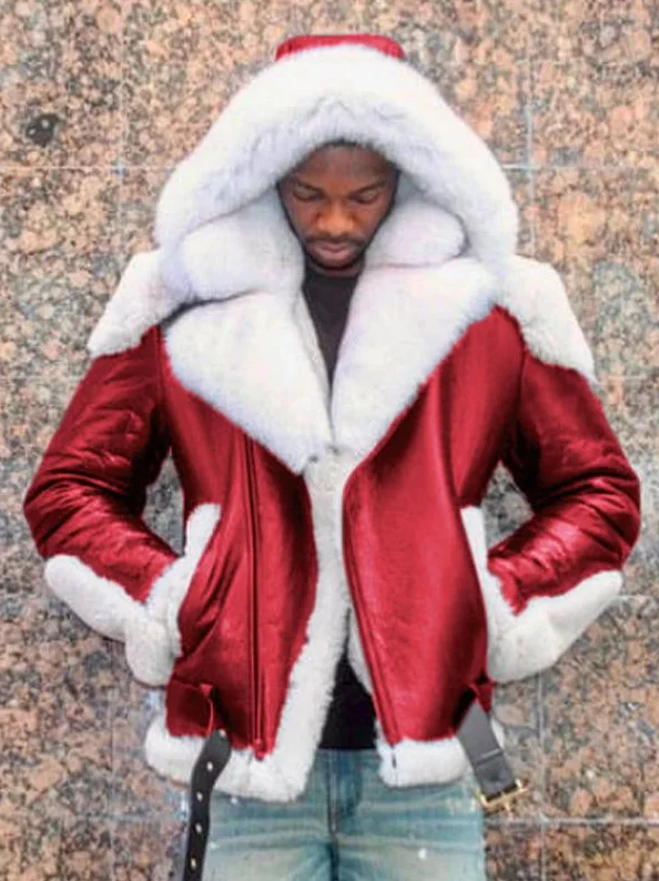 Punk Style Men’s Pu Leather Jacket Hooded Coat Autumn Leather Faux Fur Faux Leather Mens Coat 2021 Winter