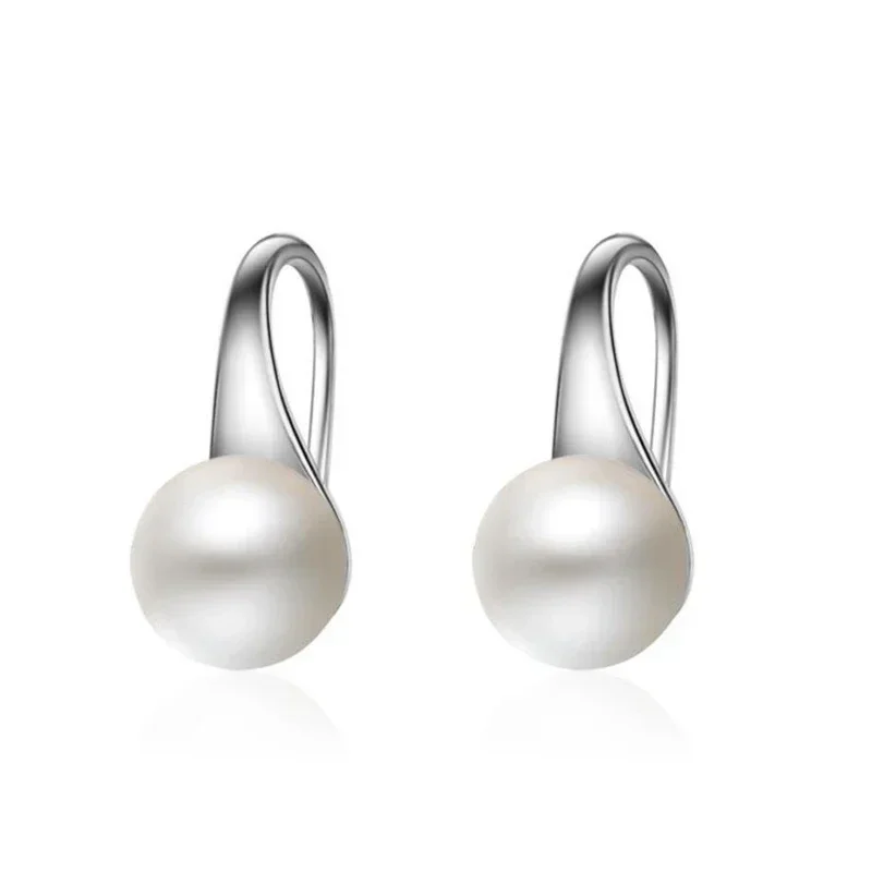 Pure 925 Sterling Silver Earrings Drop Women Round Charms Pearl Hook Dangle Drop Wedding Cute Gift