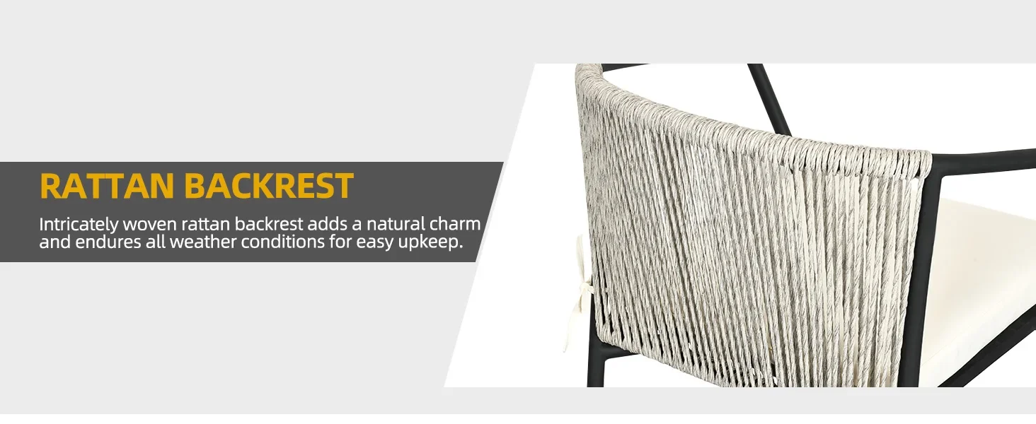 QDWVO 3 Pieces Patio Set Wicker Furniture Outdoor Table and Chairs Rattan Chair Conversation Sets with Cushions & Coffee Tab