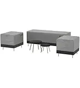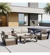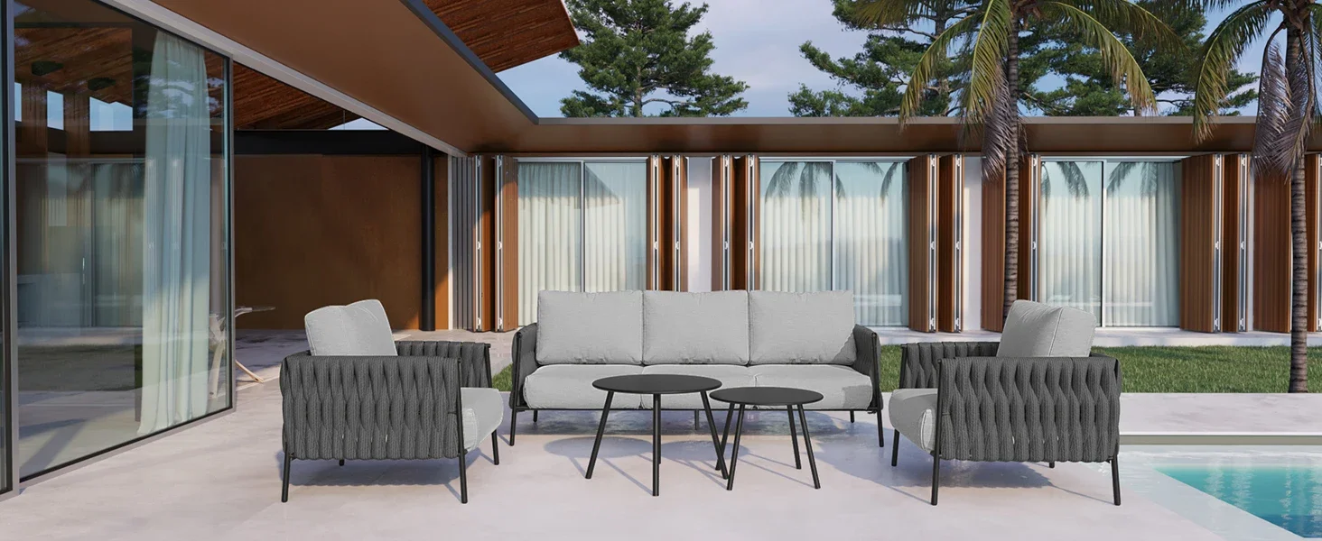 Qeast Oak Life chatter patio set 5 pieces, outdoor furniture 5-seat sofa with two round coffee table, waterproof thick