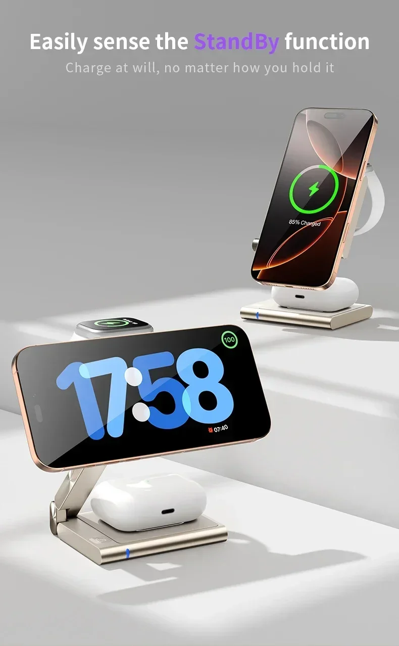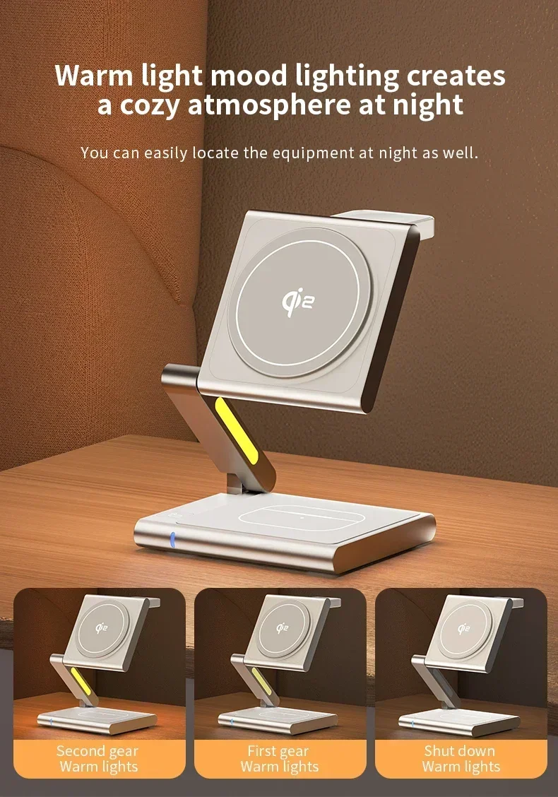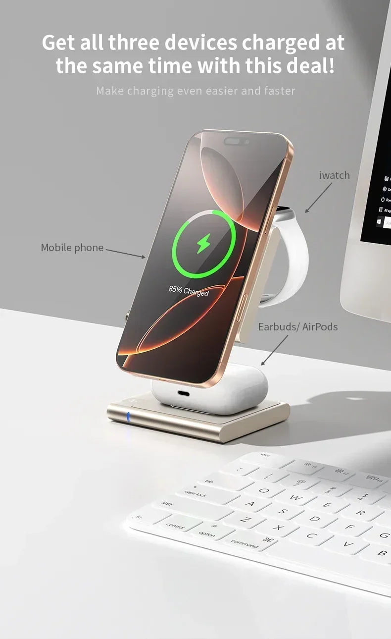Qi2 3 In 1 Foldable Magnetic Wireless Charger Mobile Phone Stand For iPhone 16 15 14 AirPods iWatch 9 8 7 Fast Charging Station