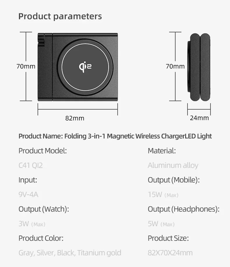 【Foldable Design】Friendly wireless travel charger is with small foldable design, easy to carry. You can easily fold the wireless charging stand to avoid collisions or scratches when traveling. The 3-in-1 wireless charger can also be folded when not in use, saving more space. Its versatility is also suitable for giving as a gift.