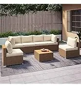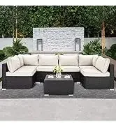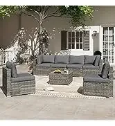 QLAUSAINT HOME Furniture, 8 Piece Outdoor Sectional Sofa PE Rattan Wicker Patio Conversation Sets,All Weather Pati
