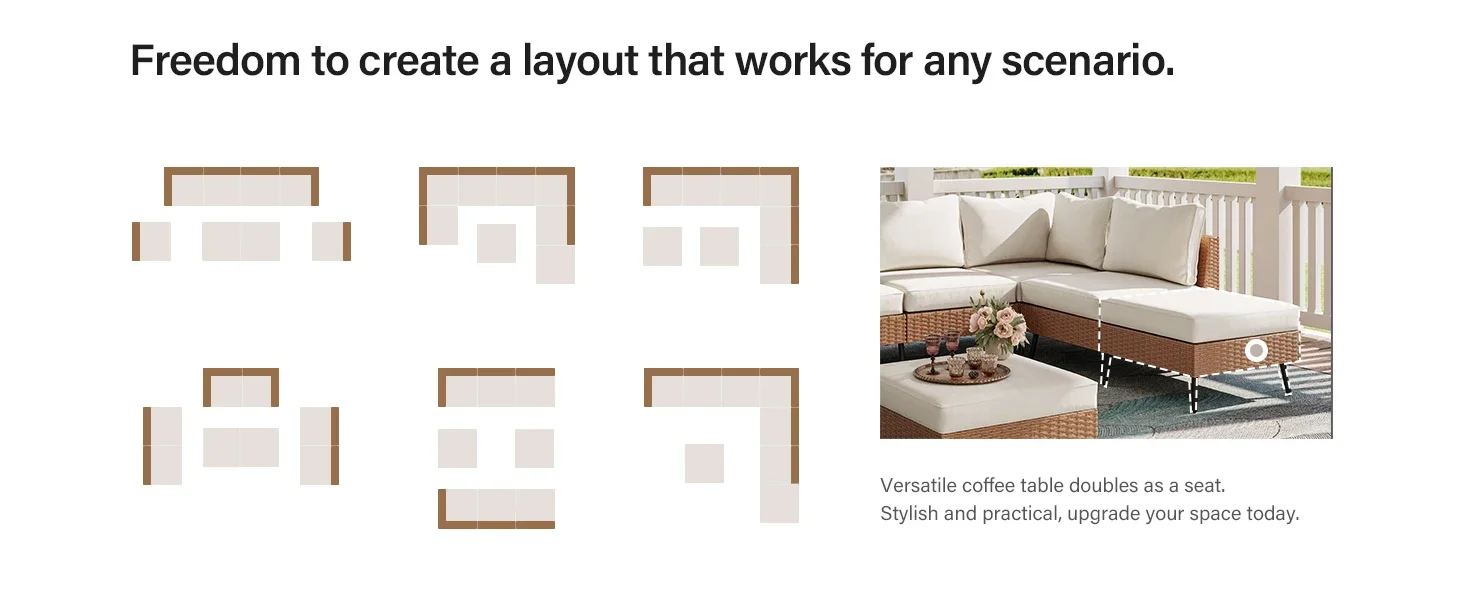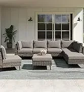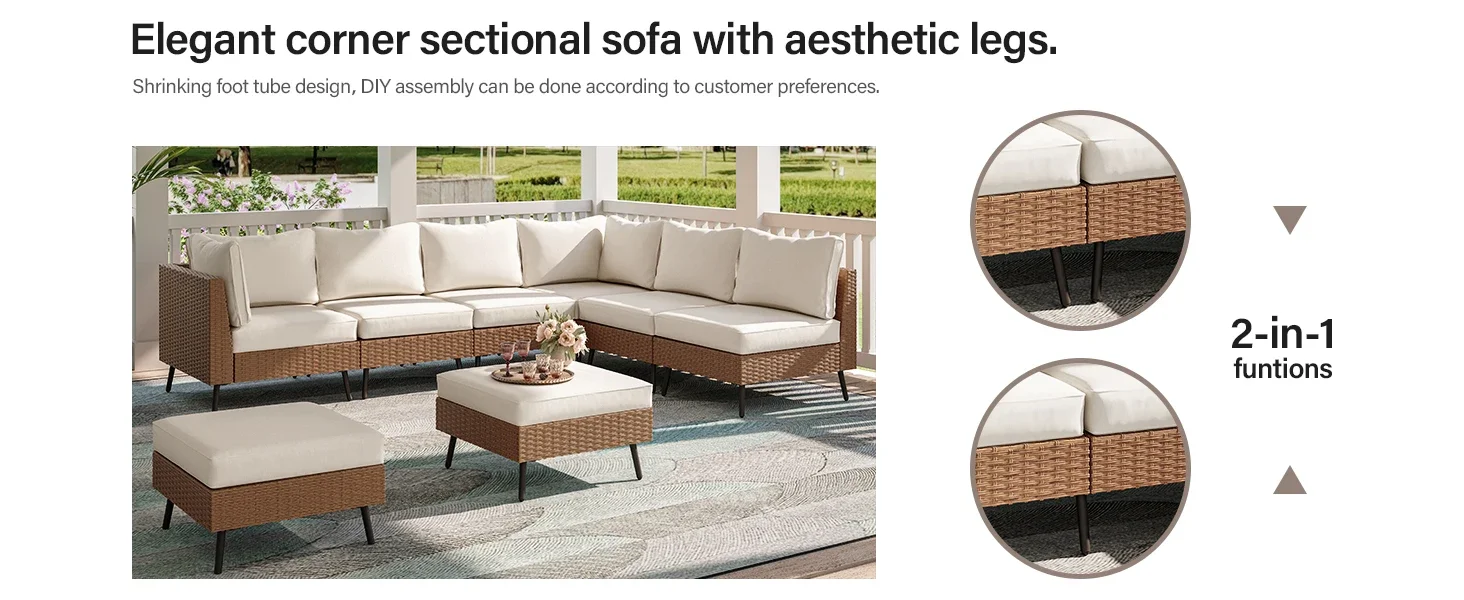 Exclusive Quick Install Patio Furniture Set w/Ottoman,Durable Wicker Outdoor Couch Patio Sectional Sofa Conversation Sets