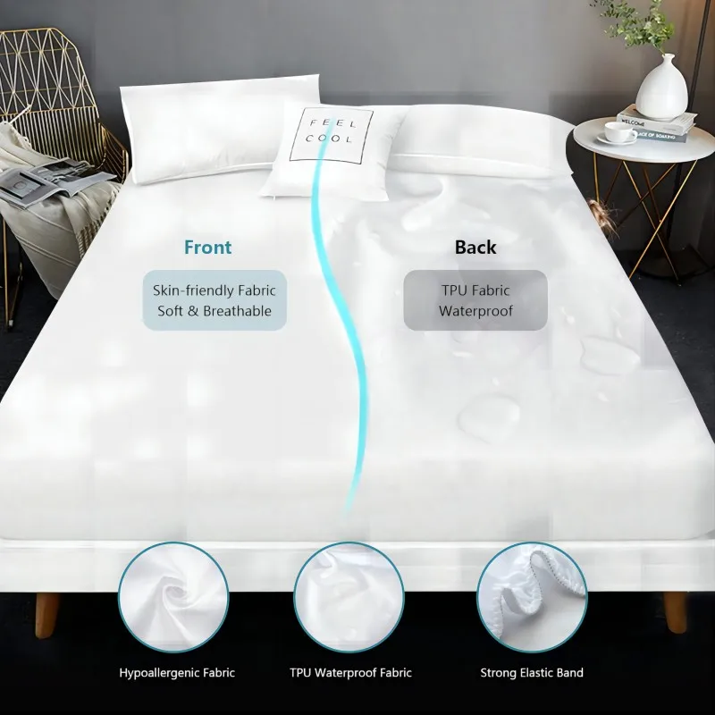 Quality Fabric Fitted Sheet Cozy Dormitory Protector Bedding High-End Home Textile waterproof Mattress Cover,Soft Healthy safe