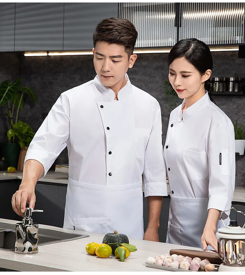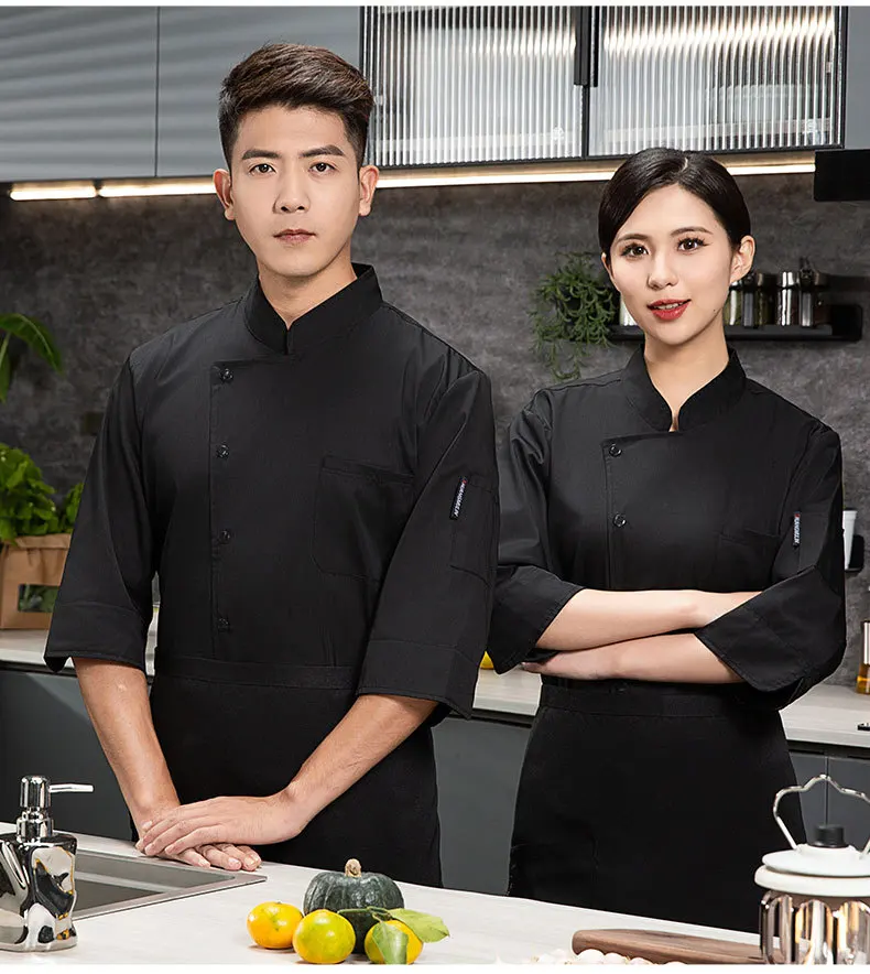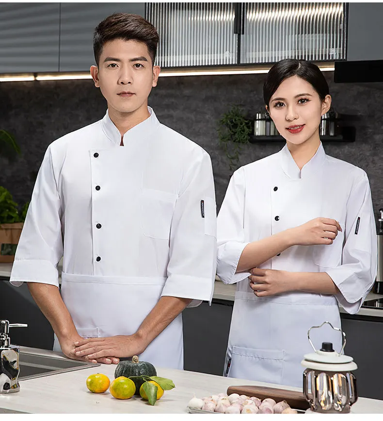 Quality New Chef Uniform Unisex Hotel Men’s Kitchen Jacket Three Quarter Sleeves Bakery Cook Cooking Coat Cafe Waiter Workwear