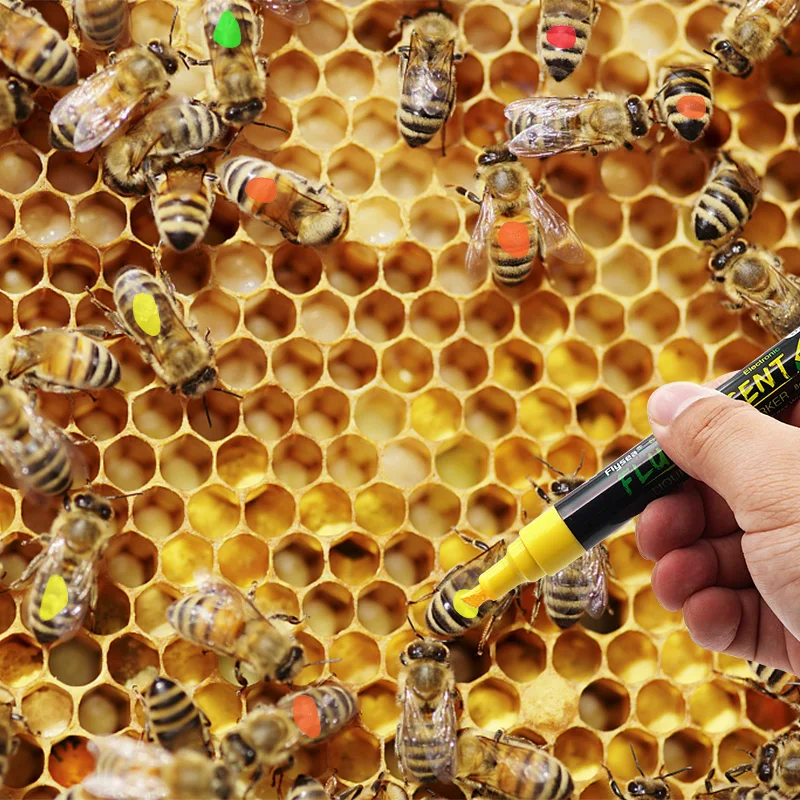 Queen Bee Marker Pen 8 Colors Optional Not Fade Non-Toxic Highlighter Marker Fluorescent Pen Bees Breeding Tool for Beekeeping