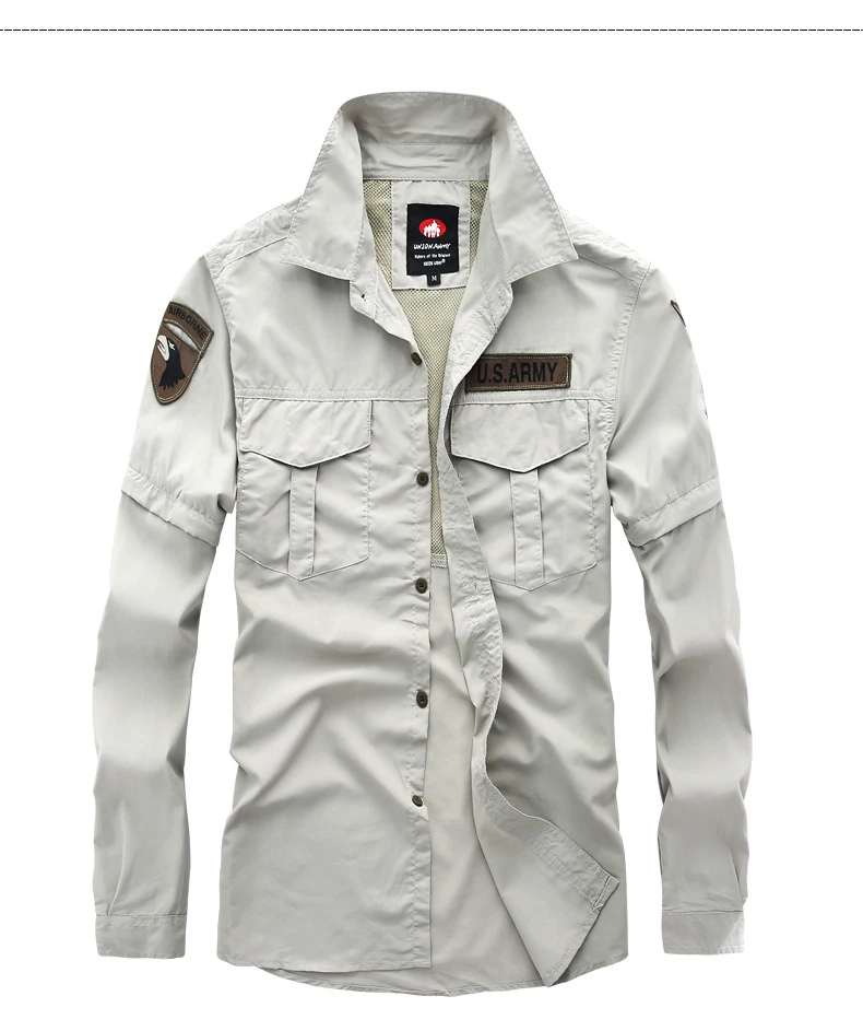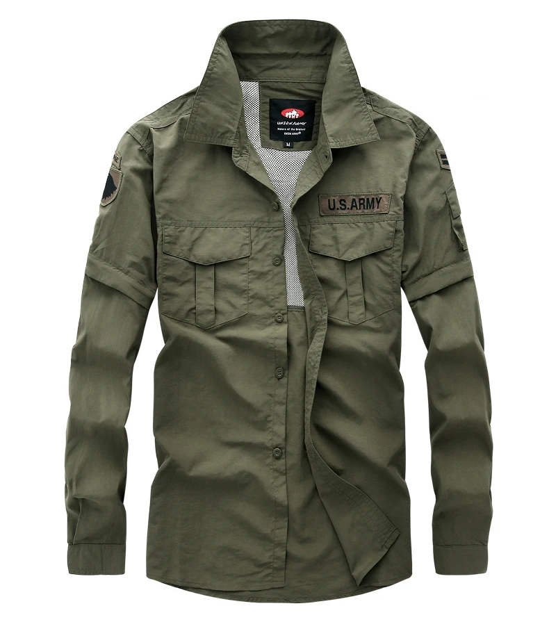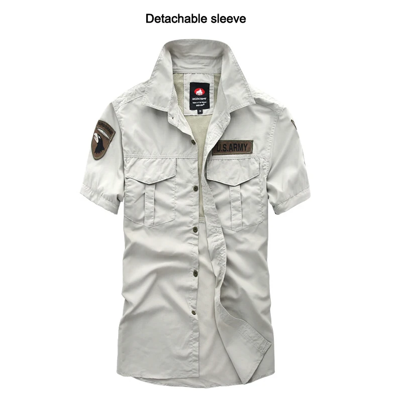 Quick Drying Men’s Casual Shirt Detachable Sleeves Oversized Streetwear Cargo Shirt Men Clothing Camping Fishing Shirt A2F992