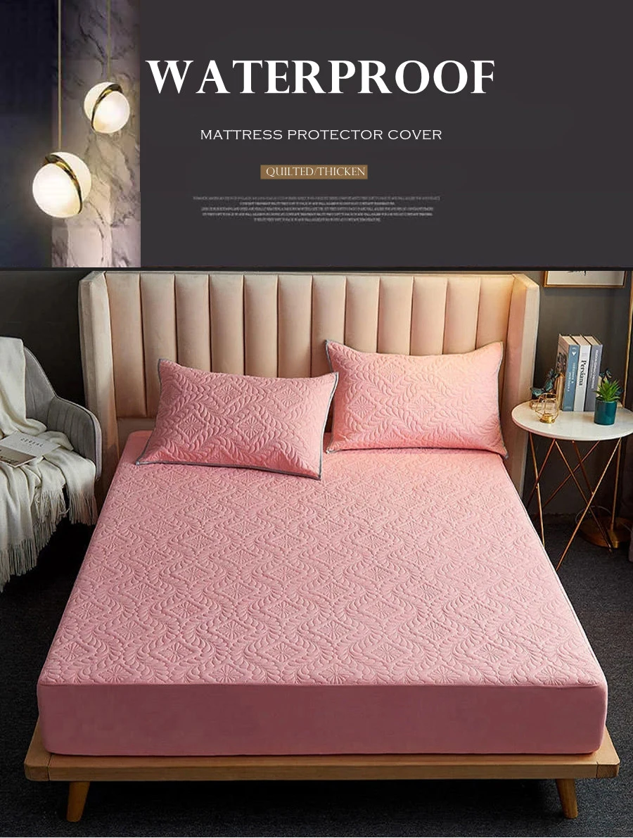 Quilted Waterproof Mattress Protector Cover Elastic Fitted Sheet Style Double Bed Protection Pad Twin Queen King 140 160x200cm