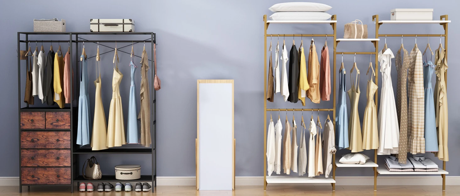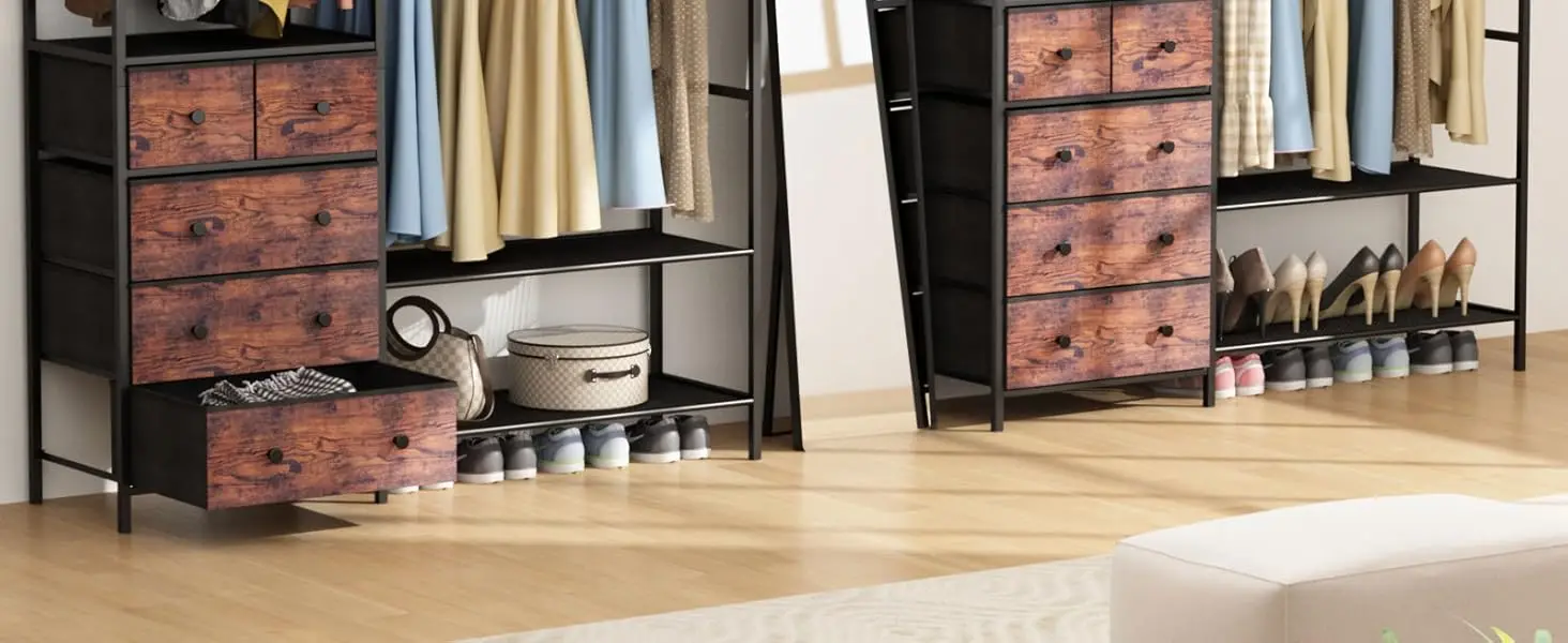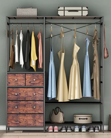 – This closet rack offers you a super sturdy and stable option and maximizes the space to place your clothes, shoes, handbags, and luggage. It is suitable for cloakrooms, apartments, dressing rooms, Laundry rooms, etc.