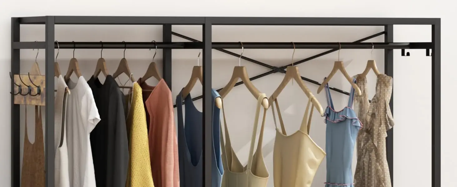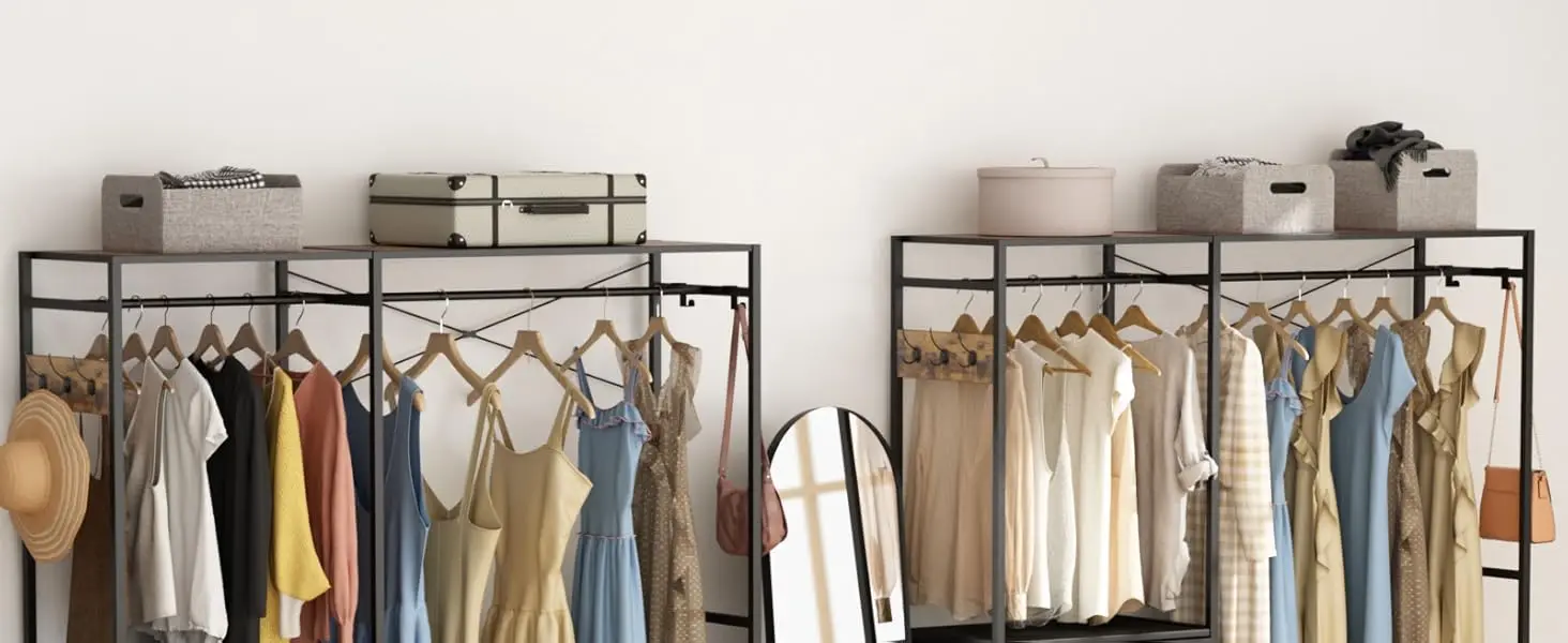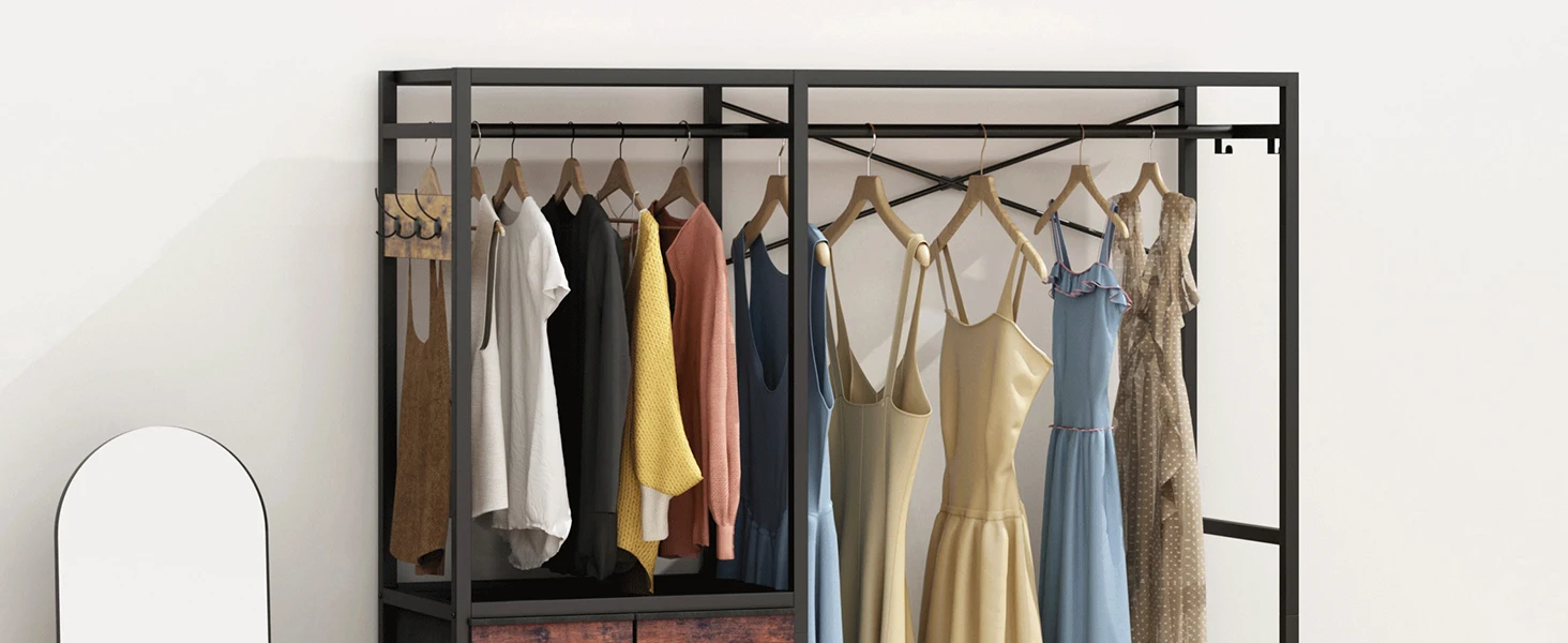 With 3 double-hooks on the side of the closet rack, can hang your coat, hats, scarves, handbags or other necessities.