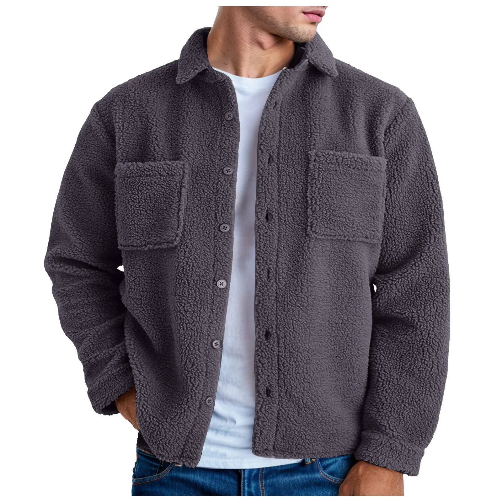 Men’s Autumn/Winter Loose Button Lapel Solid Color Cardigan Jacket Plush Jacket
