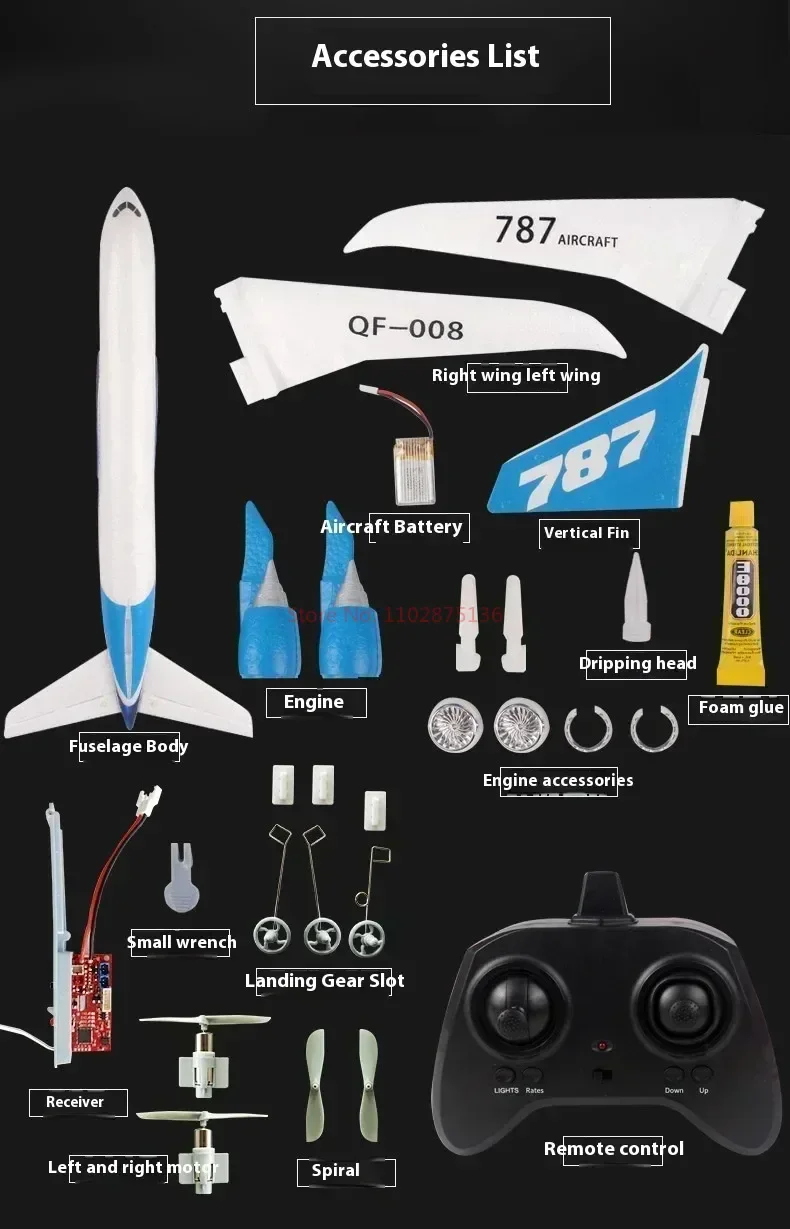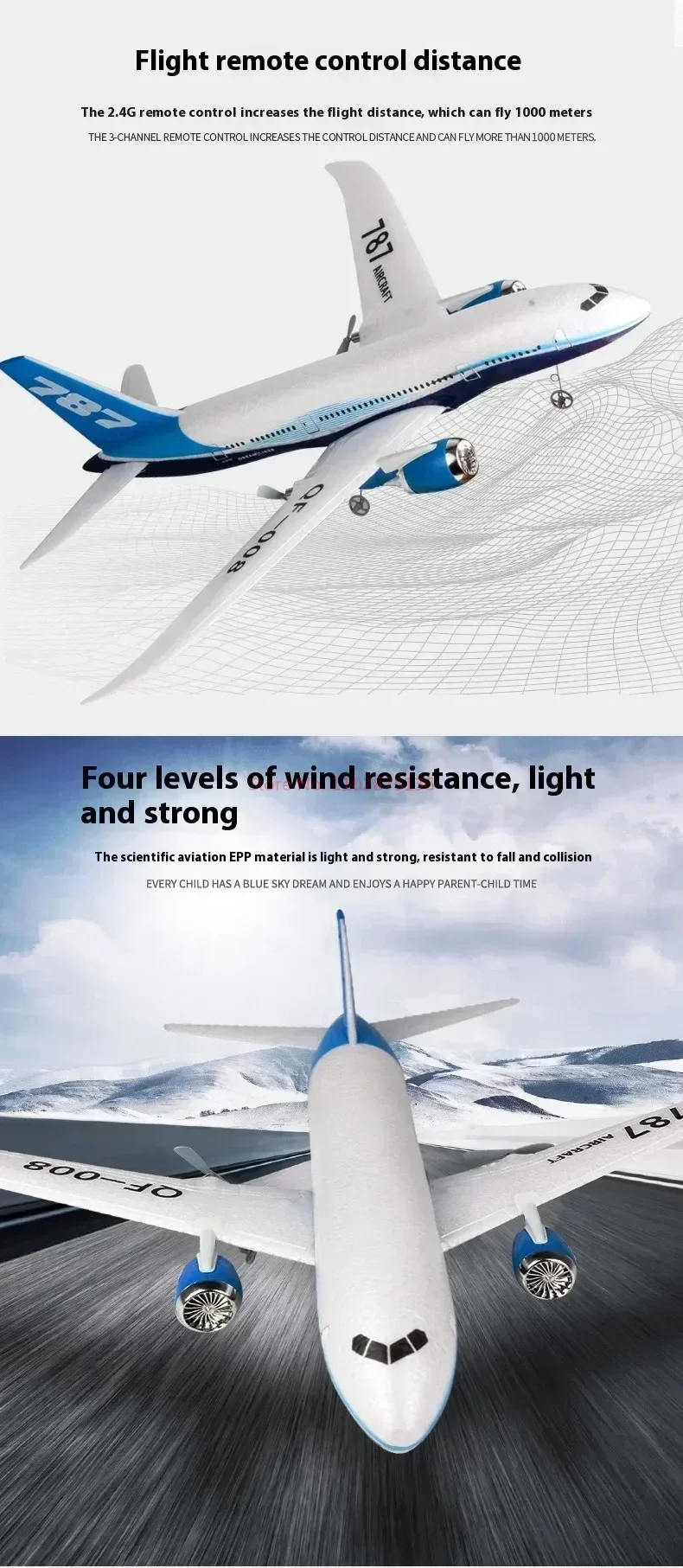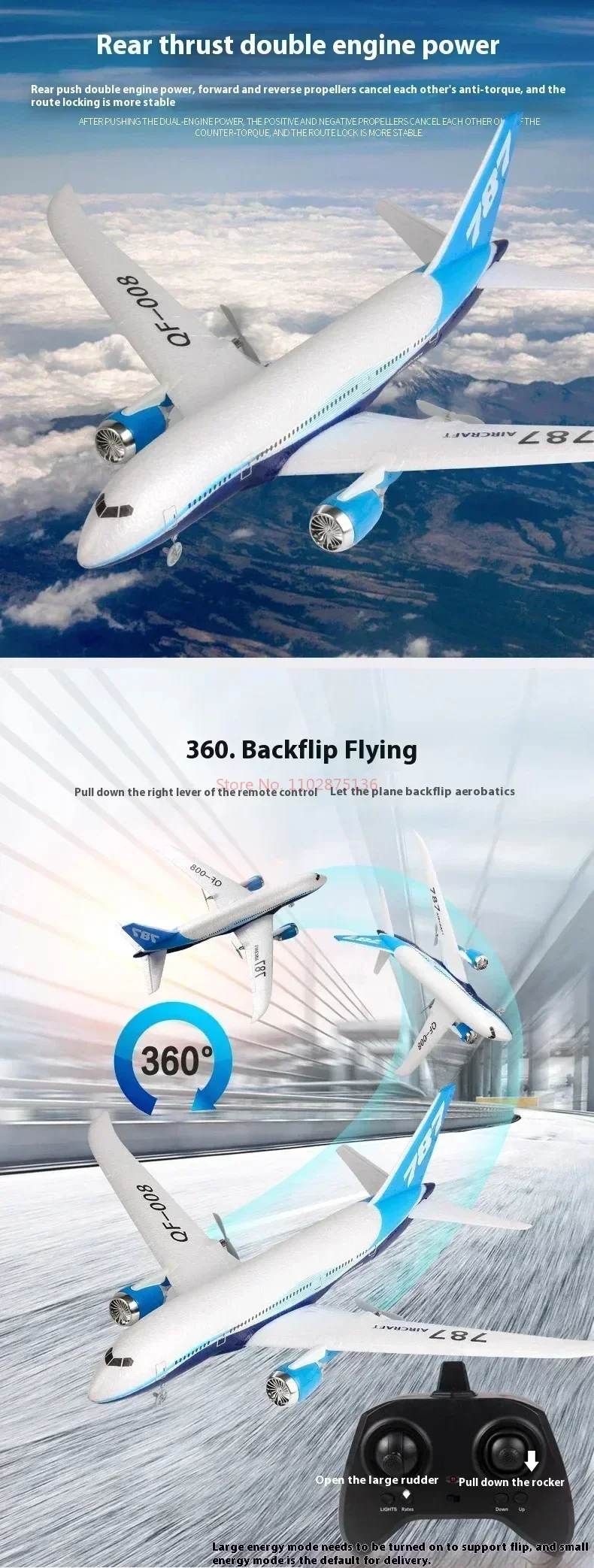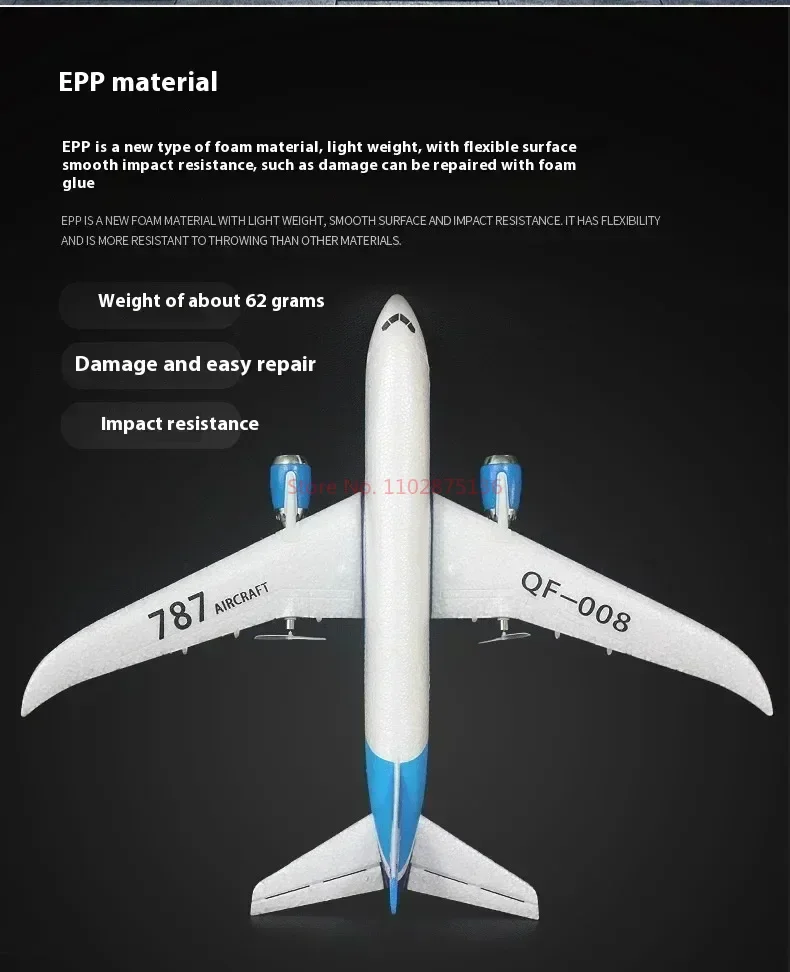 RC Boeing 787 Glider Qf008 2.4G Electric Remote Control Plane Three-Channel Fixed Wing Aircraft Passenger Jet Model Toy Kid Gift