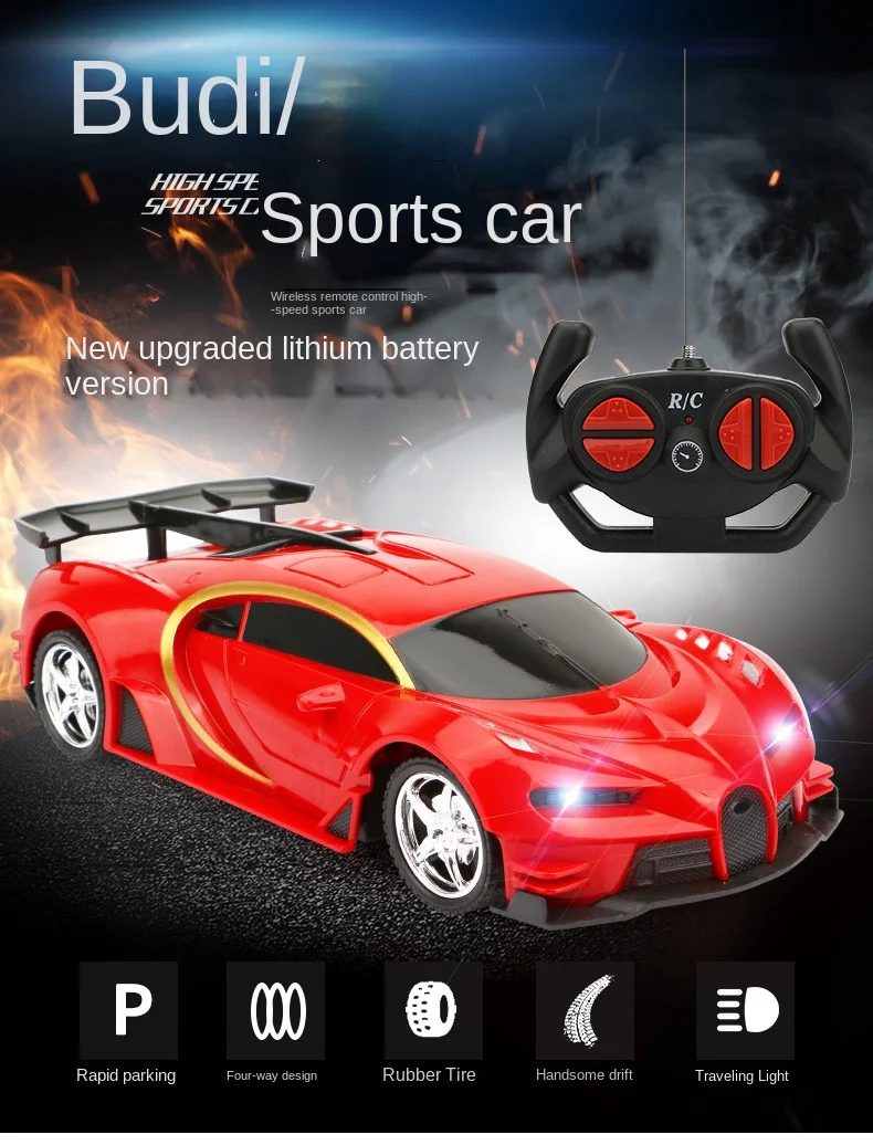 Rc cars 1:18 Bugatti red Sports car children’s Resistance to Falling and Collision four-channel Classic Red car Toy for kids