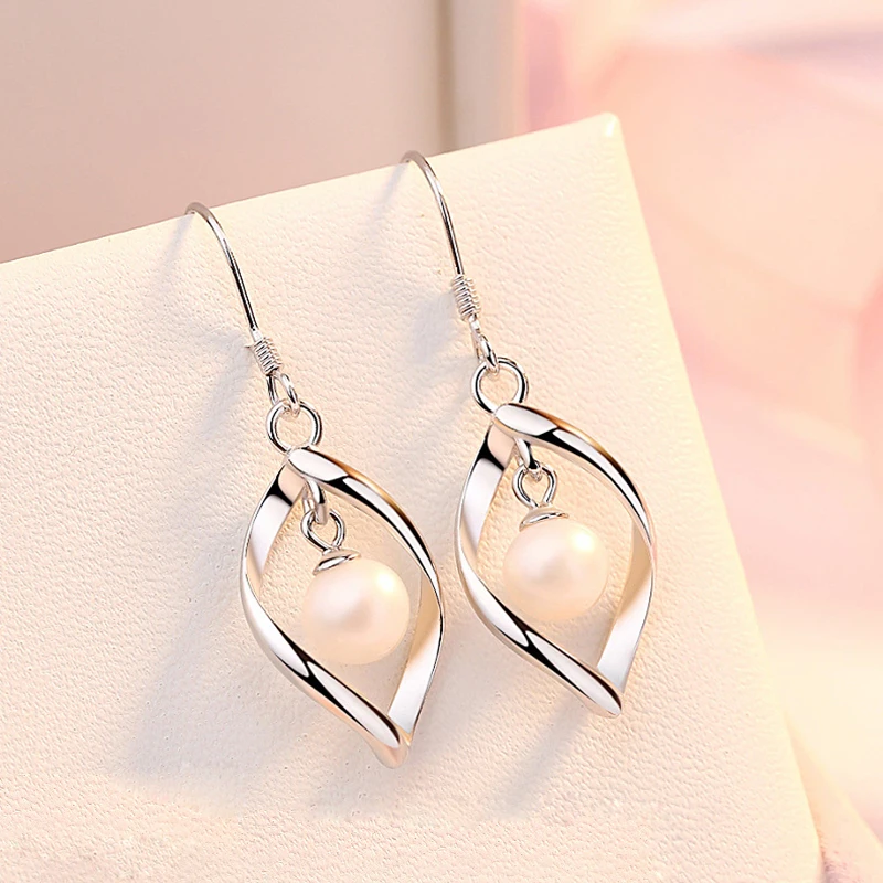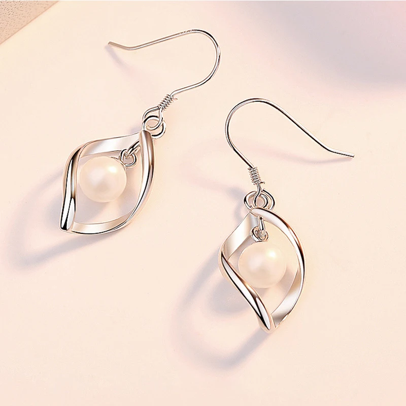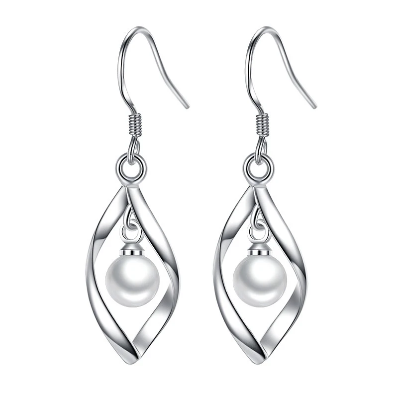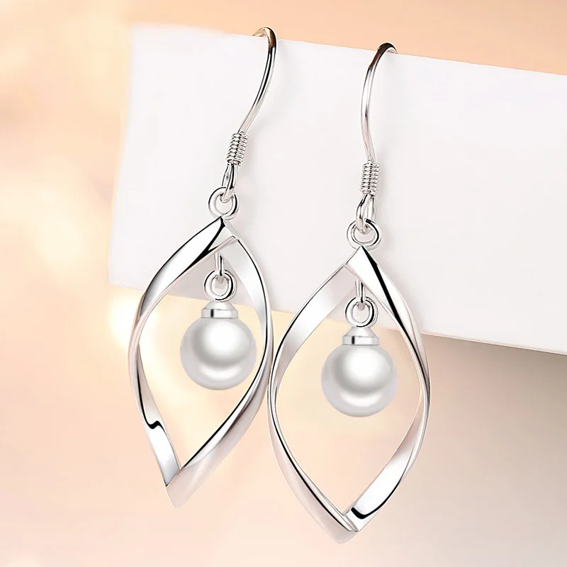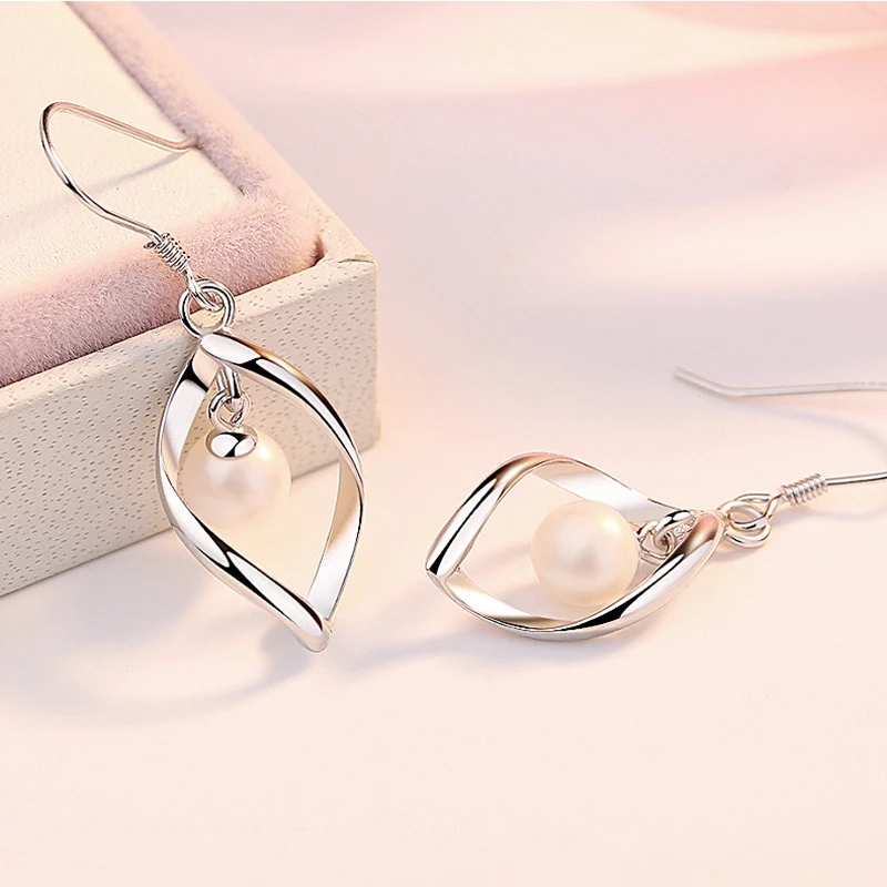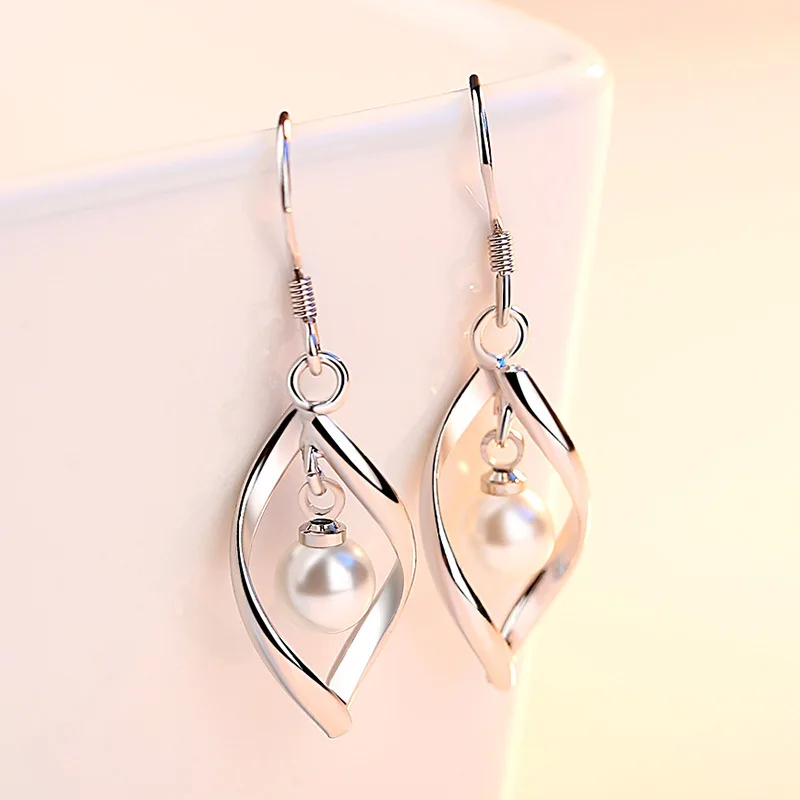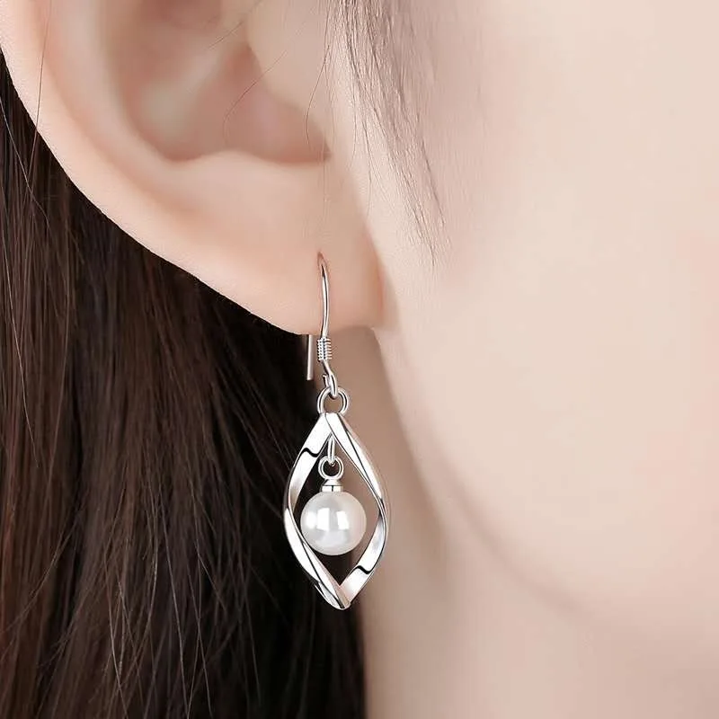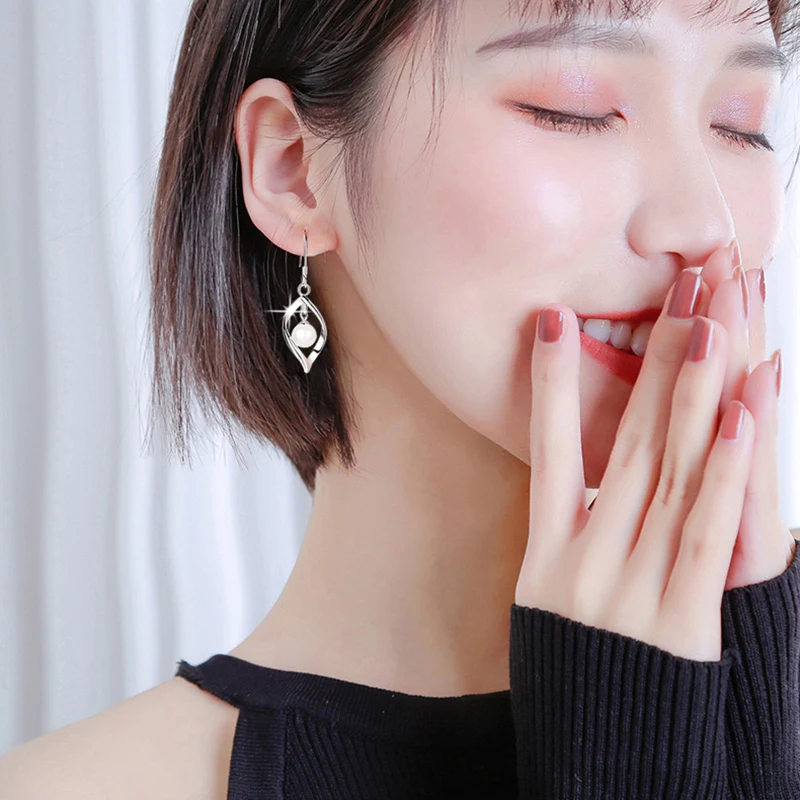 Real 925 Sterling Silver Women’s Fashion Jewelry New Hollow Leaf Pearl Drop Earrings XY0027