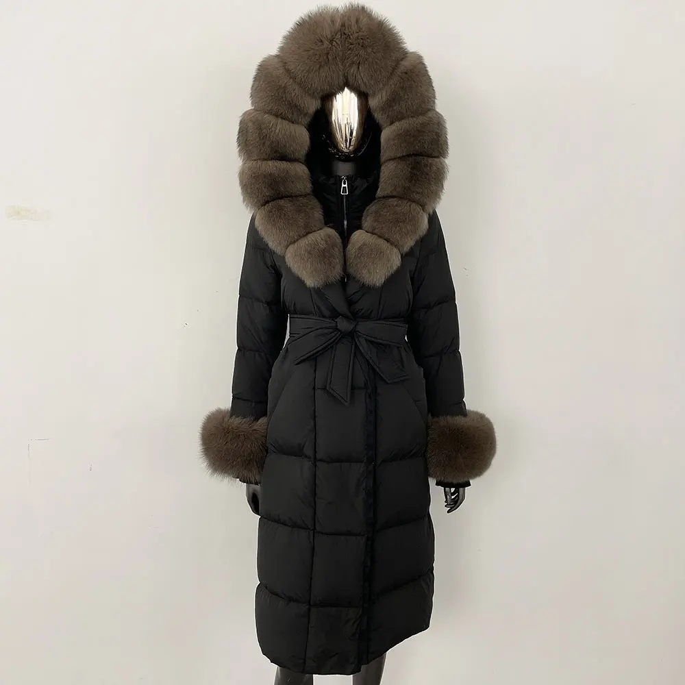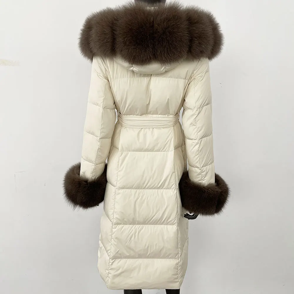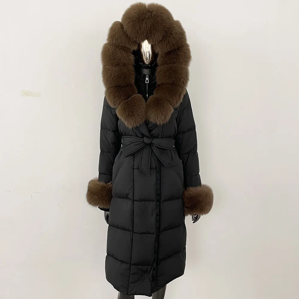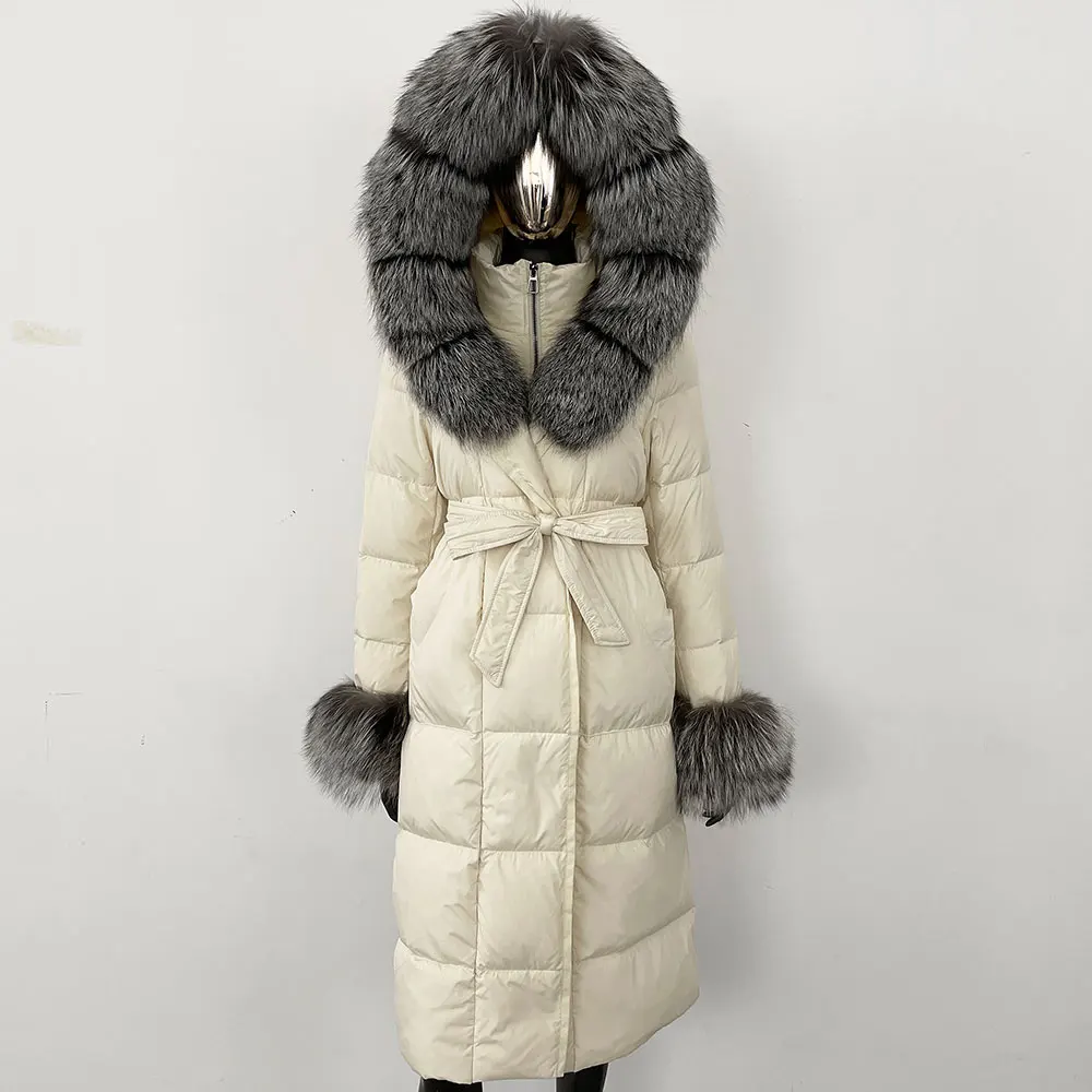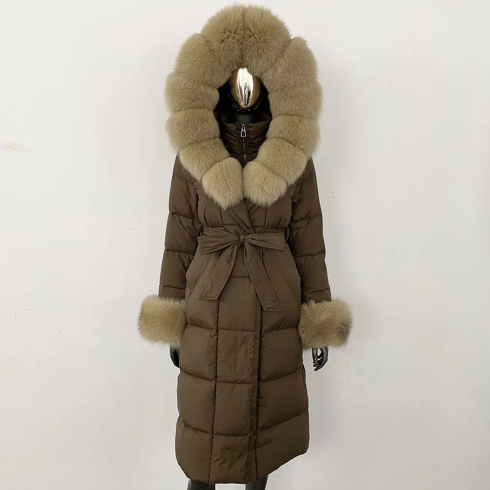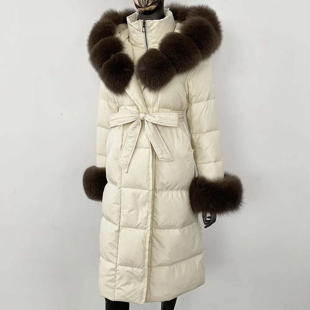 Real Fur Jacket Women Fashion Winter Natural Big Fox Fur Collar Loose Thick Warm Goose Down Coat Outerwear Streetwear Luxury