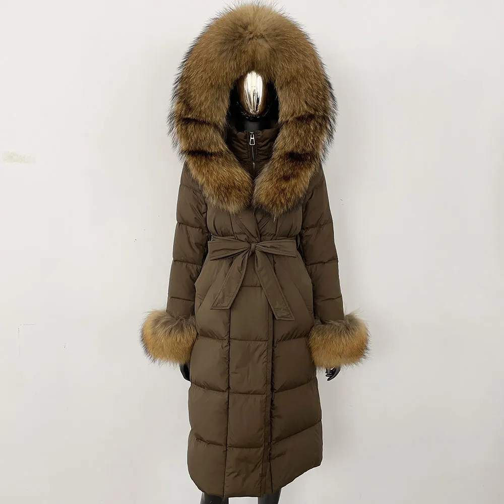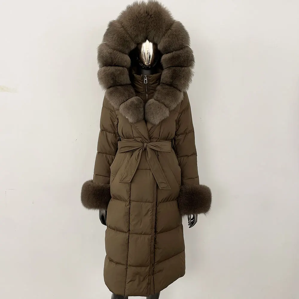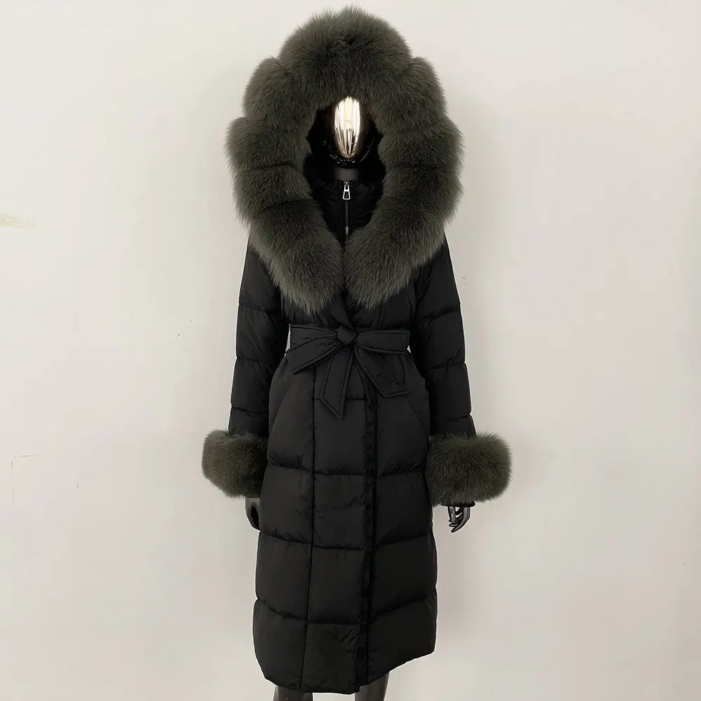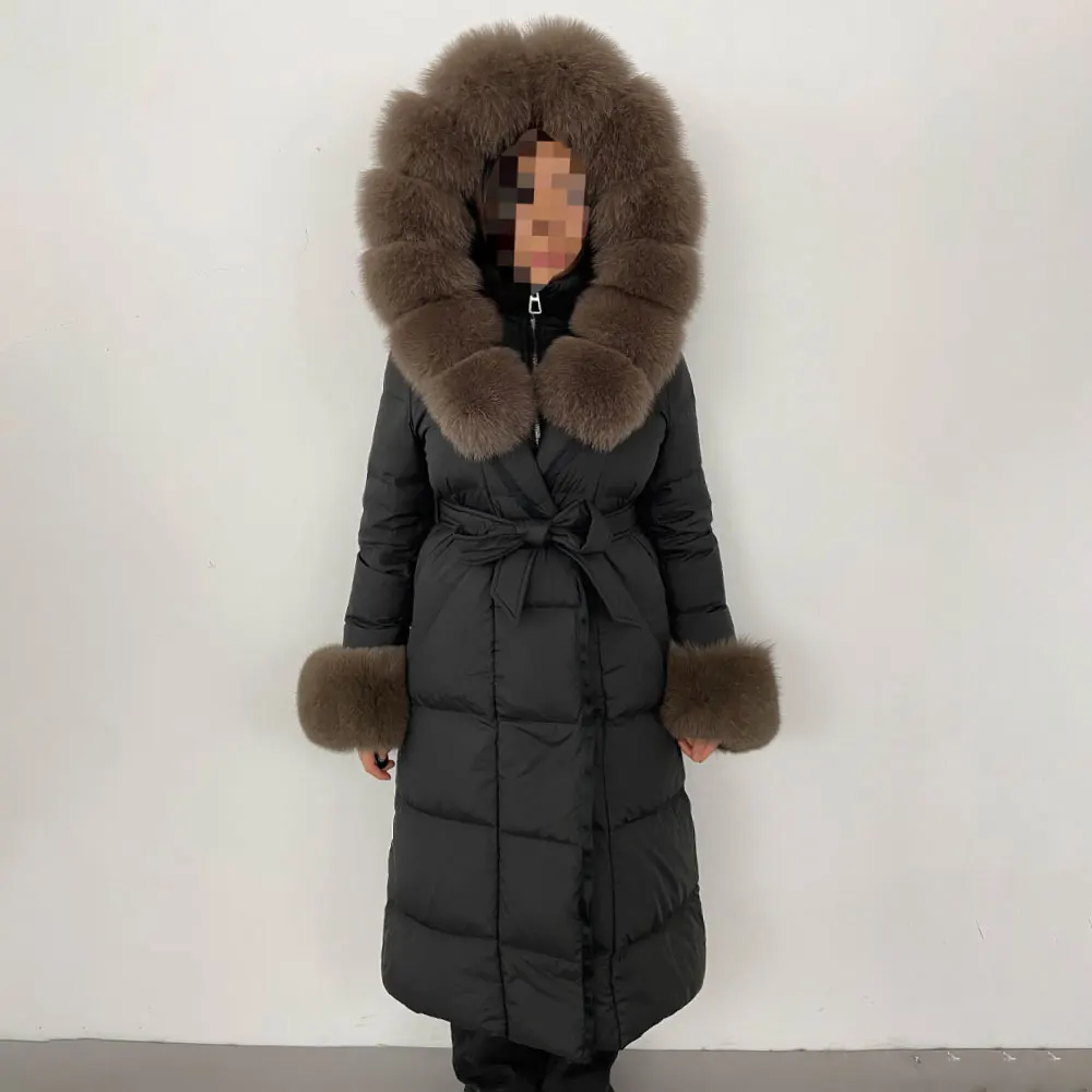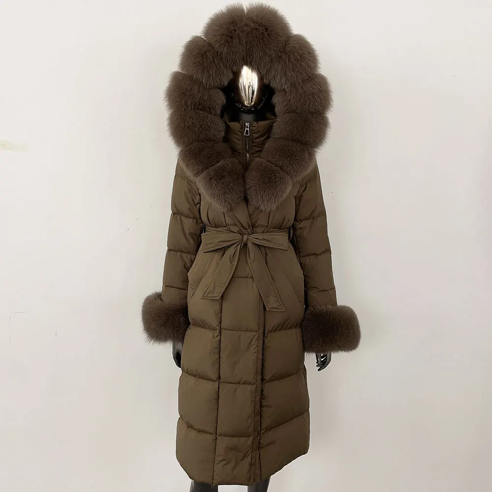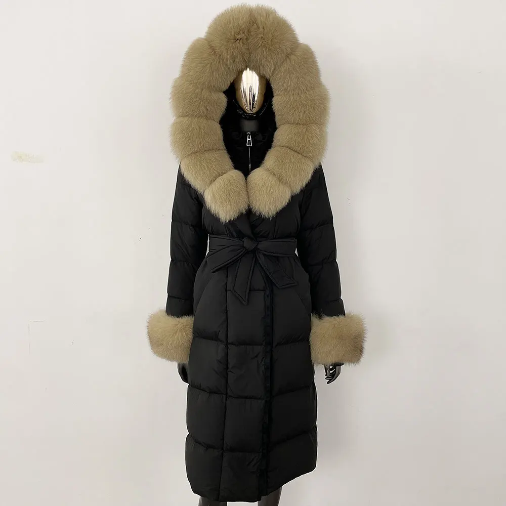 Real Fur Jacket Women Fashion Winter Natural Big Fox Fur Collar Loose Thick Warm Goose Down Coat Outerwear Streetwear Luxury