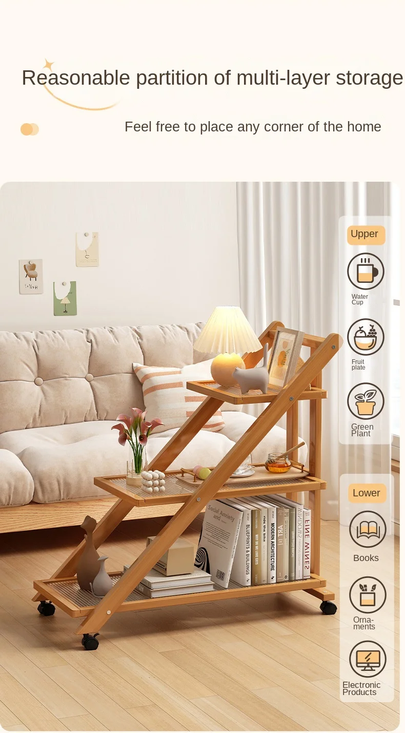 Realife Side Table Movable Tea Table Sofa Bedside Table Home Corner Table Living Room Floor Standing Small Cart Storage Rack New