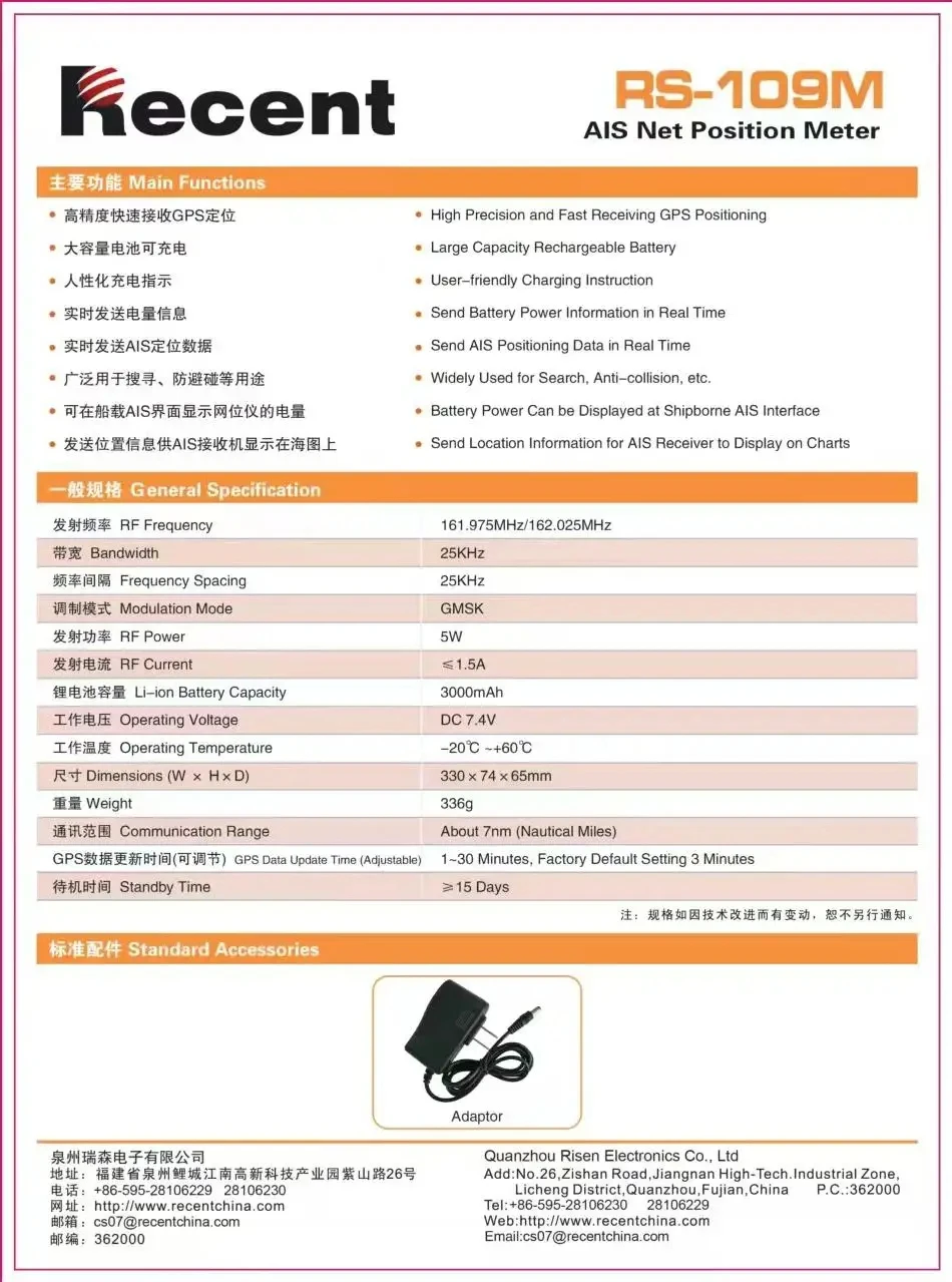 Recent RS-109M Net Locator High Precision Fast Receiving GPS Positioning 5W 15 Days Standby Buoy Tracker Fishing Accessory