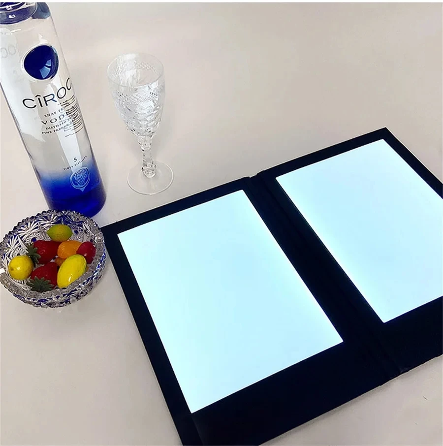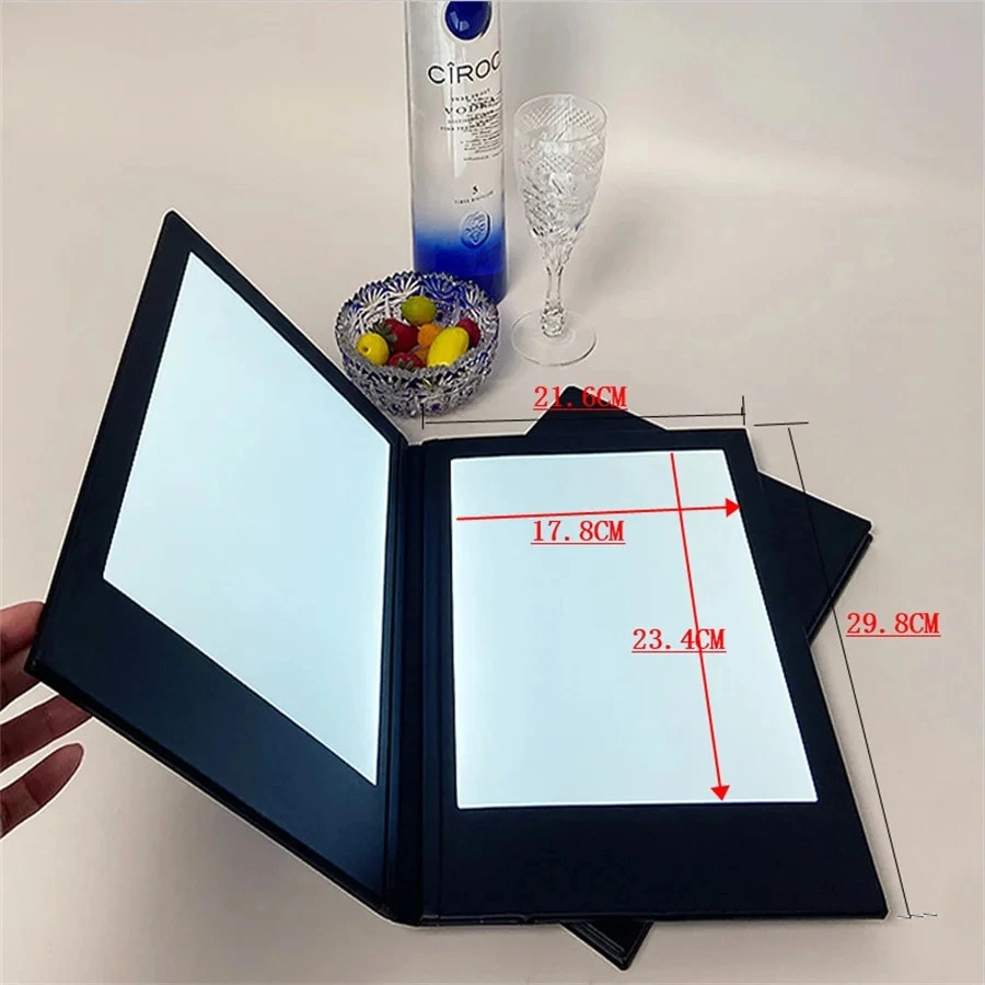 Rechargeable LED Lighted Menu LED Backlit Menu Table Tent Display Single Double Triple A4 Led Menu book For Restaurant Bar Decor