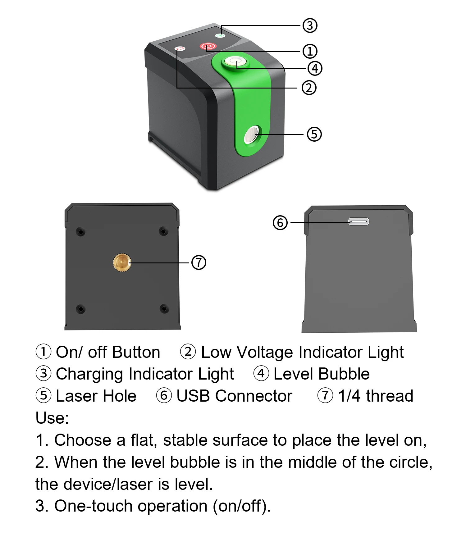 5. 1/4-inch threaded base level
