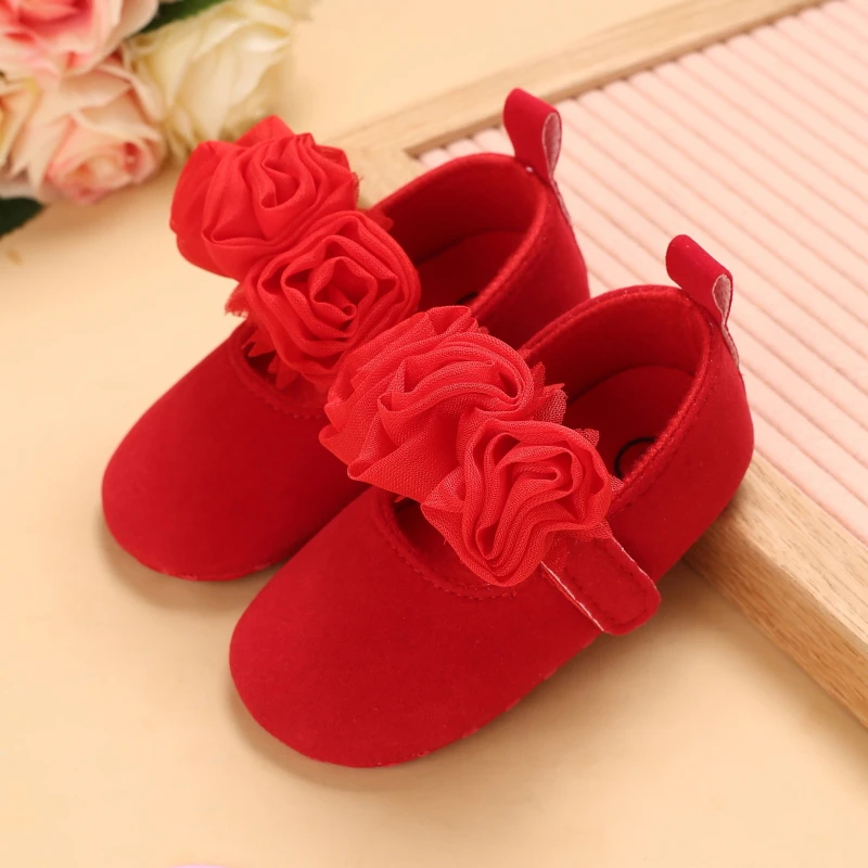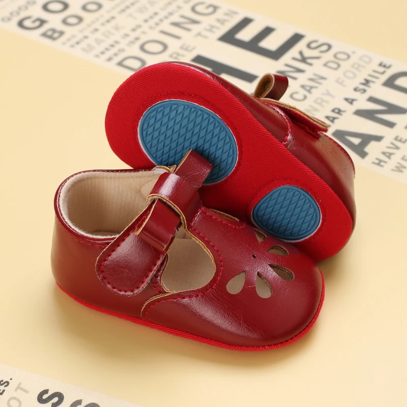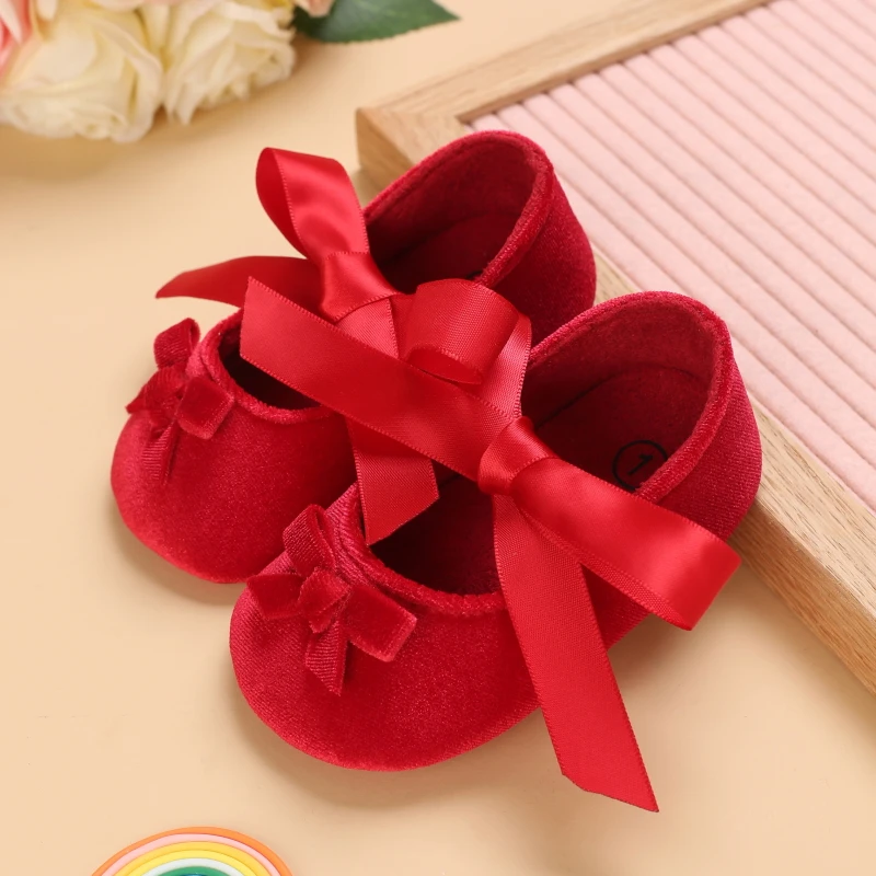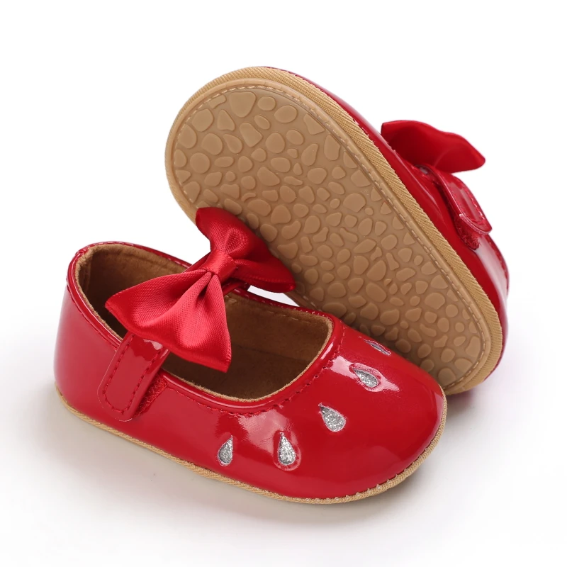 Red Newborn Baby Shoes Baby Girl Shoes Cute Classic Bowknot Rubber Sole Anti-slip PU Dress Shoes First Walker Toddler Crib Shoes
