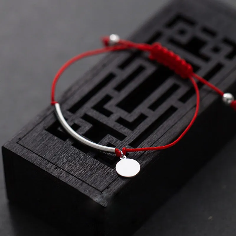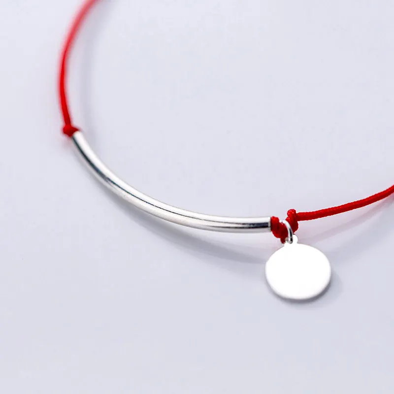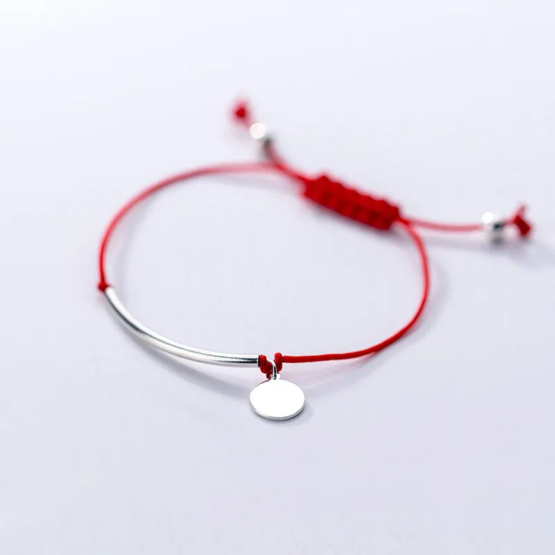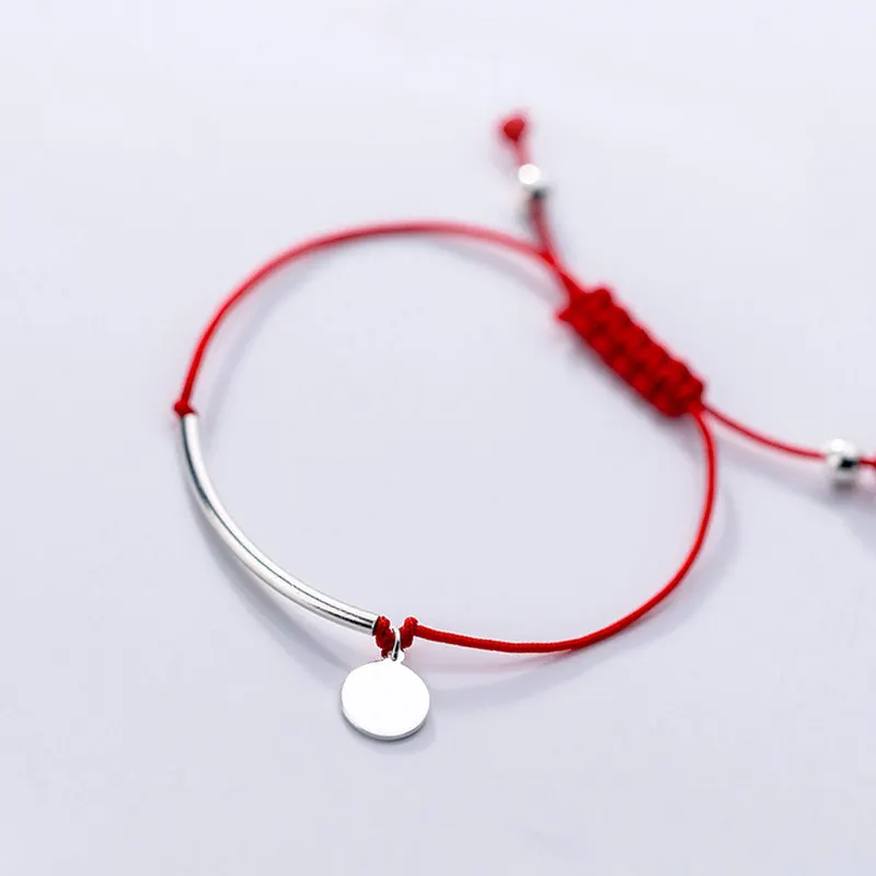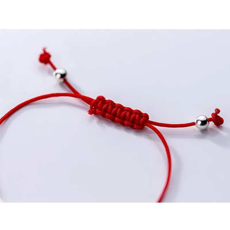 Red Thread 925 Sterling Silver Bracelet Fashion Jewelry Adjustable Rope String Round Long Tube Charm Bracelets for Women Female