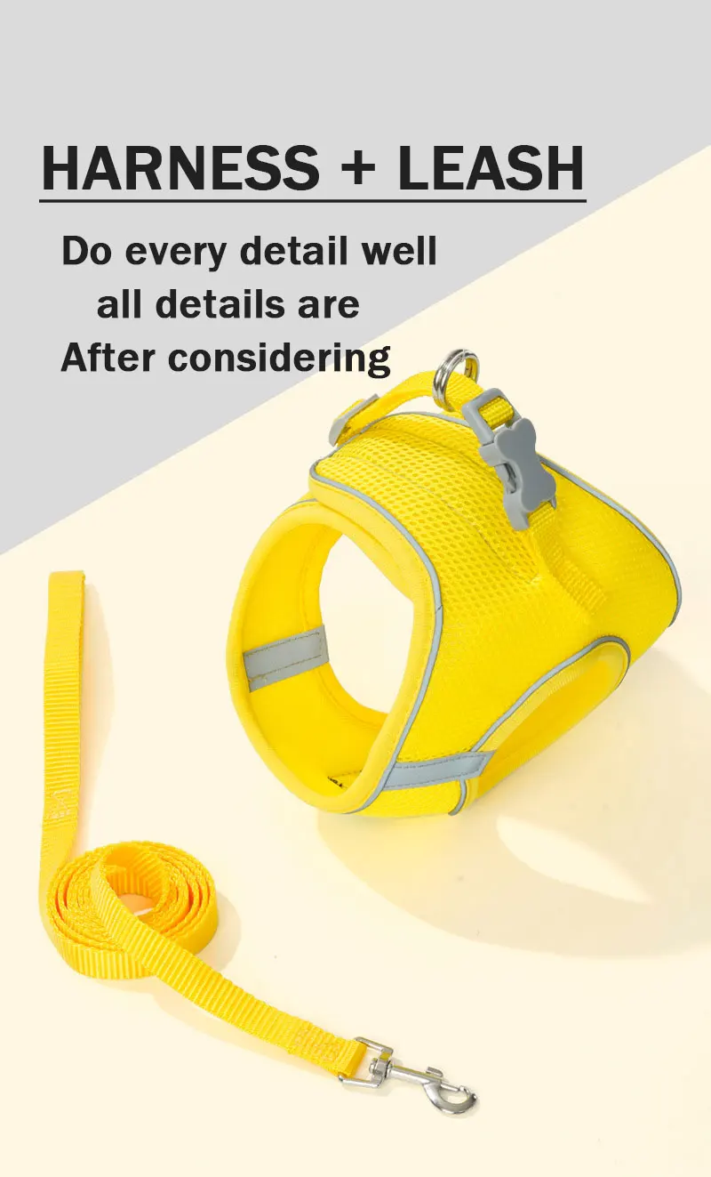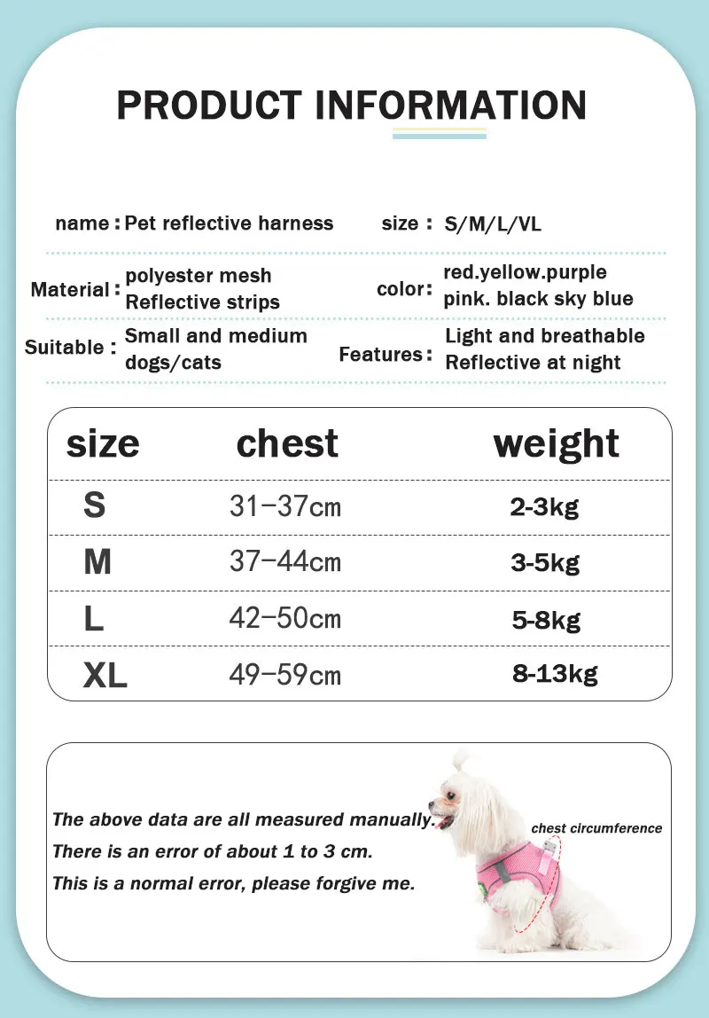Reflective Breathable Mesh Cat Harness and Leash for Small Dogs Puppy French Bulldog Chihuahua Pug Pomeranian Kitten Cat