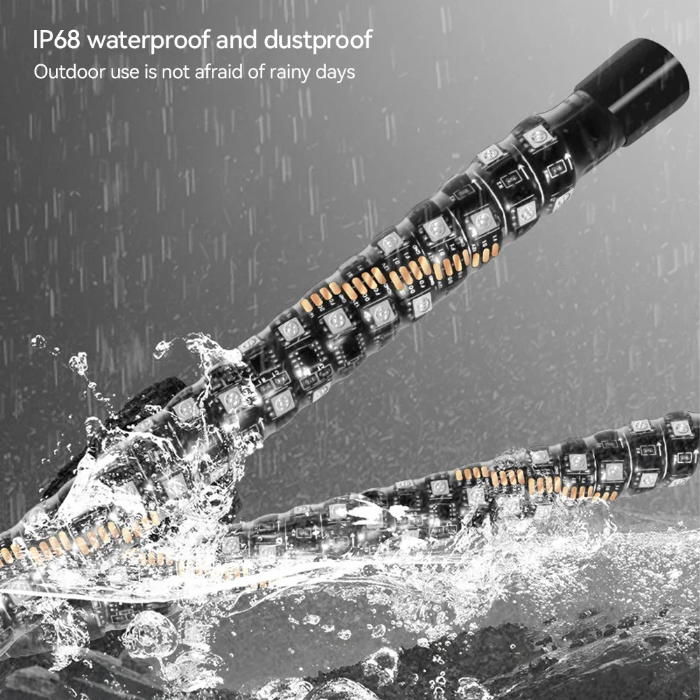 - The LED flag pole lights boast a 2.6-meter extra-long cable, providing flexibility and convenience for any setup. The 360-degree spiral lamp body is built to last, ensuring long-term reliability even under extreme conditions. With an IP68 waterproof rating, these lights can withstand any weather, from heavy rain to thick fog, making them perfect for all-year-round use.