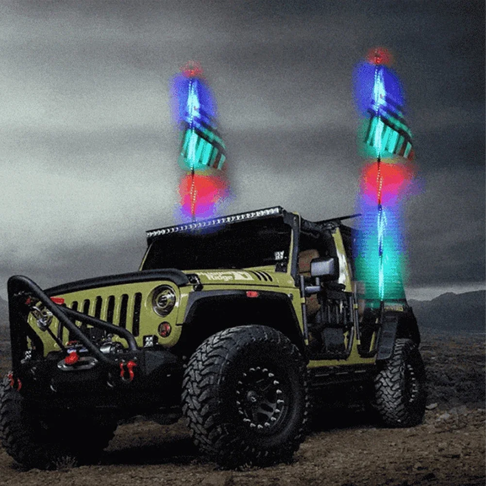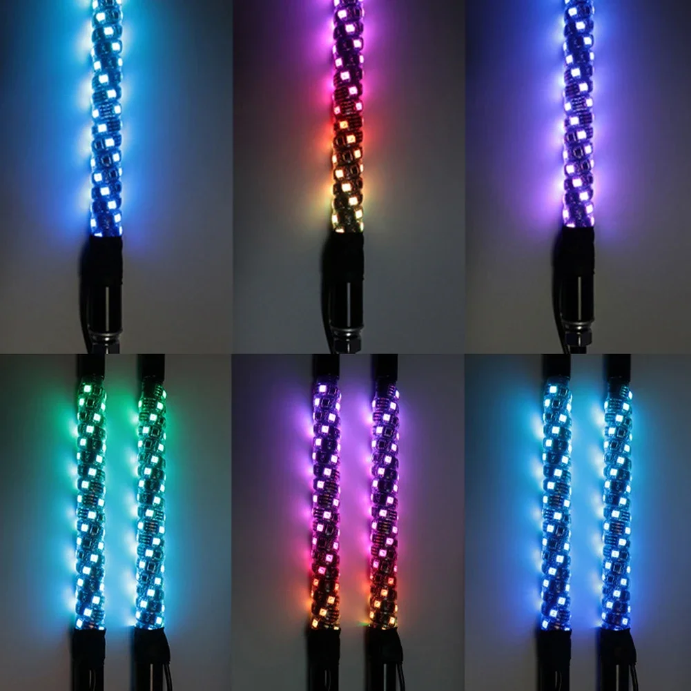Remote Control LED Flagpole Lights 30cm/1ft Colorful Flagpole Spiral Antenna Whips Lights for UTV ATV Off Road Truck Sand Buggy