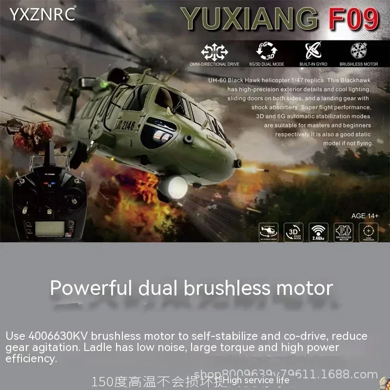 Remote Controlled Aircraft Black Hawk Rc Helicopter Yxznrc F09 Uh60 Utility 6ch 6-Axis Gyro 3d6g Dual Brushless Motor Rtf Rc