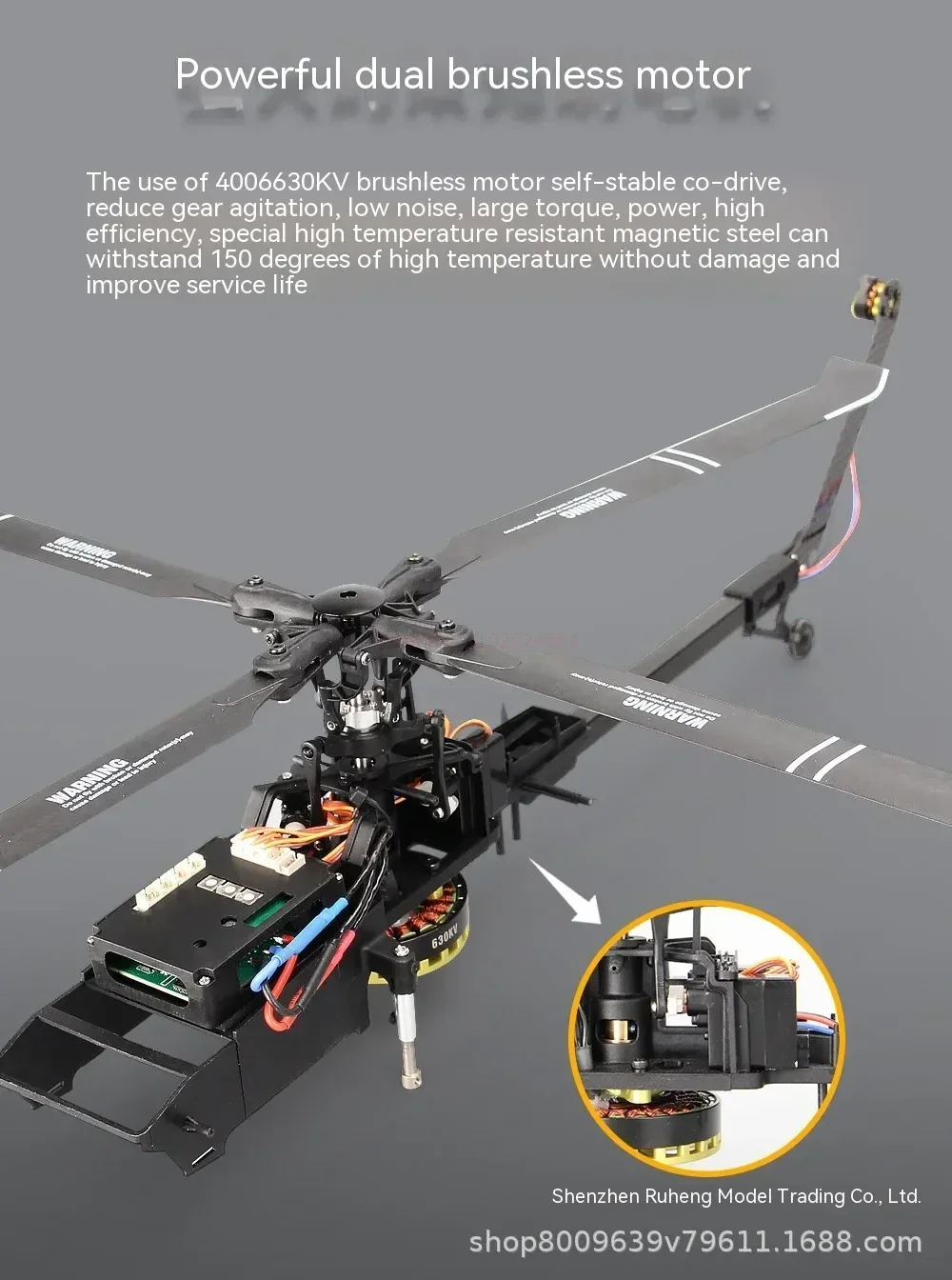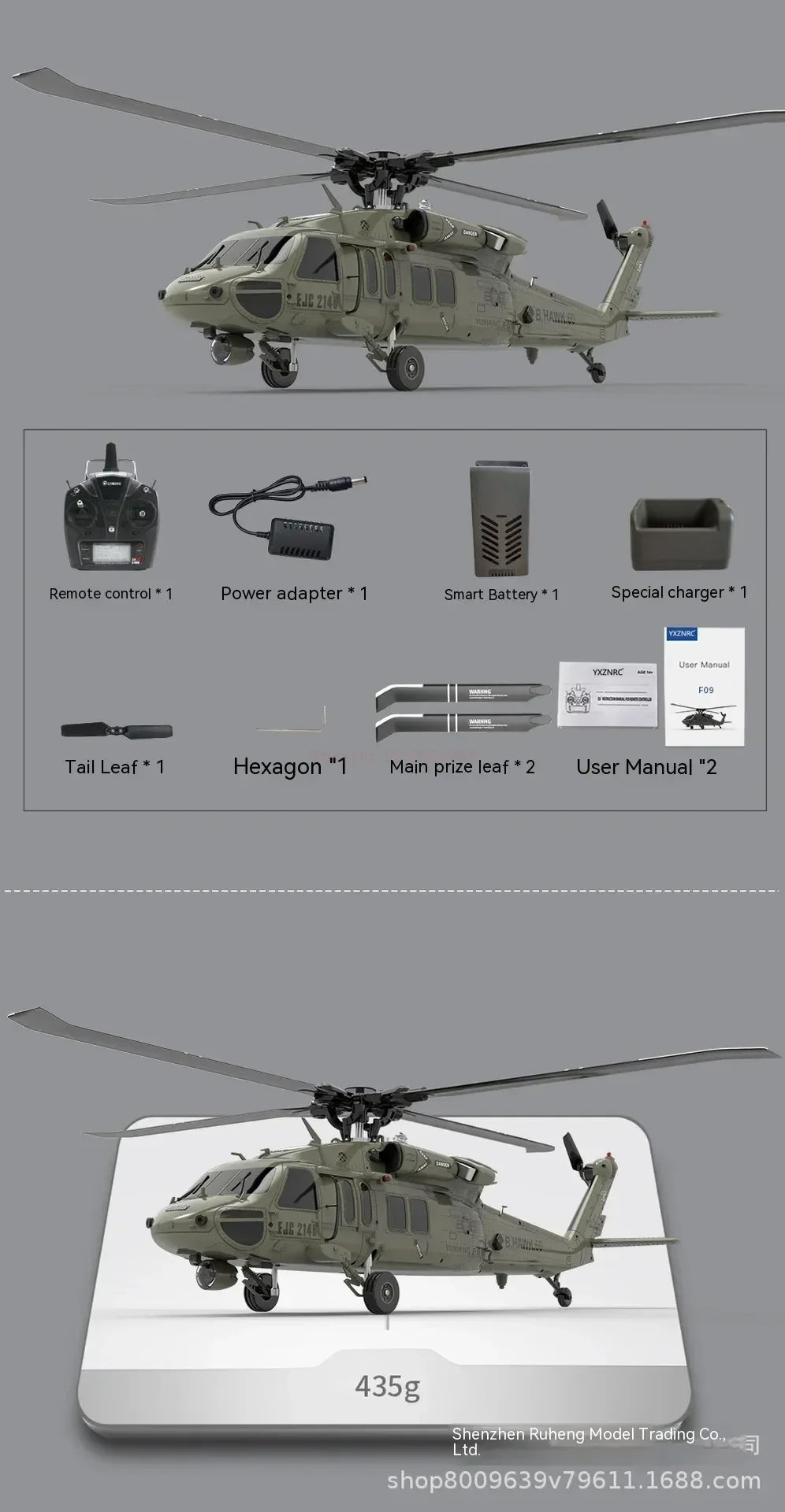 9. With High precision CNC rotor head, swashplate to optimize the structure, reduce the weight and greatly reduce the probability of aircraft damage.